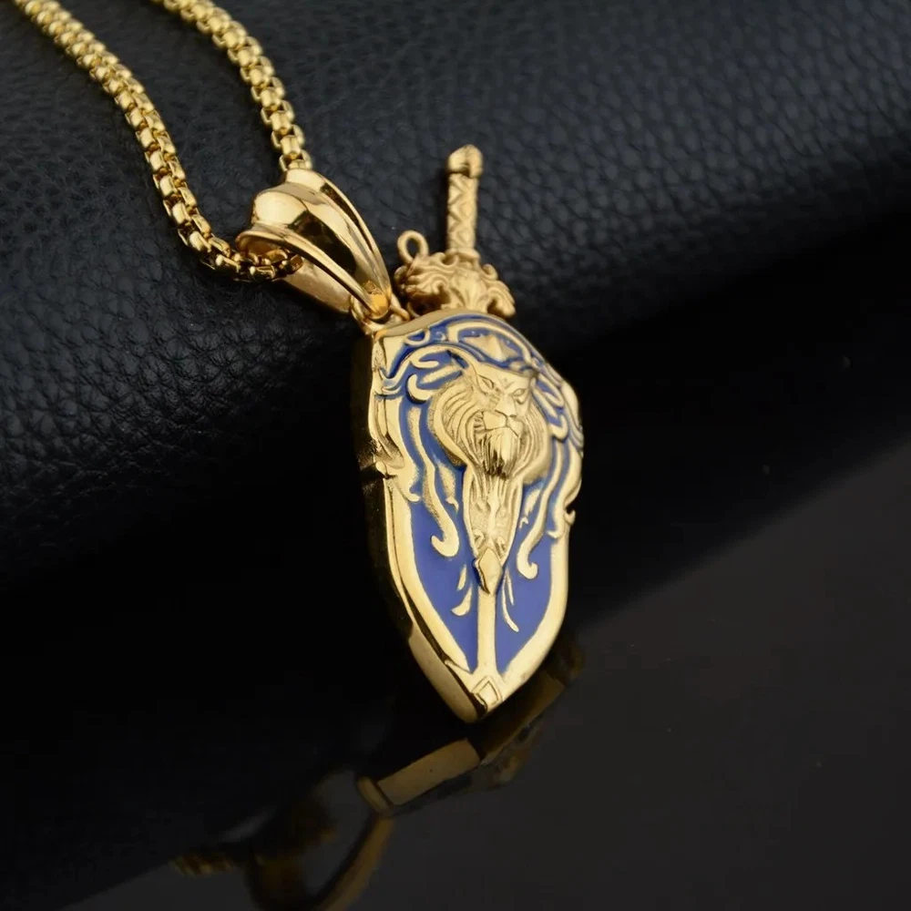 Gold Sword & Lion Shield Pendant Necklace - Royal Blue Enamel Design This Gold Lion & Shield Pendant Necklace is a striking unisex accessory that combines strength and elegance. The pendant, made from durable titanium steel, measures approximately 57mm in height and 25mm in width , featuring a royal blue enamel design and intricate lion detailing. It comes with a sturdy 60cm titanium steel box chain , adding to its premium feel and style. Perfect for fantasy enthusiasts or anyone seeking bold, medieval-inspired jewelry, this necklace is an excellent statement piece or thoughtful gift. About us Welcome to our store! We supply many products from around the world and ship them worldwide. We search for the best of men's products we think you would like to bring them to you at reasonable prices, our excellent customer service and quick response to any query no matter how big or small is part of our corporate creed and you the customer and your satisfaction are always our top priority. We only ship to the confirmed address. Before you pay, please make sure your address in matches the address confirm is same eBay. Buyers' Information: We strive our best to provide you the most reliable, affordable way of shipping service. But sometimes international delivery is highly depended on the courier company and local customs/duties. If you do not receive your item on time, please contact us immediately for further assistance. Thank you for your understanding. Shipping Method All items will be shipped by our trusted supplier which excels at providing a fantastic service. Shipping Time All items will be shipped within 48 business hours upon receipt of payment (except Saturday and Sunday). It takes about 7-14 days to ship to UK.. We are unable to take any responsibility for any custom delay or tax. Reason is because transit time is highly depended and provided by Postal Service (except weekends and holidays) About Item All items sold by us are being described to the best of our abilities, as accurate as possible, and with utmost conscientiousness on our part. However, to avoid any potential oversights, I respectfully request your assistance in helping us to make this a mutually satisfactory transaction by THOROUGHLY reviewing item description and photos, and asking all questions PRIOR TO BIDDING. Please Note that size and color representation are subject to manufacturing variance and may not be exact. Also note that monitor settings may vary from computer to computer and may distort actual colors. Please read these terms thoroughly before placing your bid. Return/Refund Accept Return is accepted within 14 days after the buyer's receiving the item. If you are not completely satisfied with your purchase, you may return it to us for a prompt exchange or we will refund your payment. Please note that all purchases must be returned within 30 days of purchase. After getting the returned item, we will refund the customer at the item's price ( excluding the shipping costs to and fro ). Delivery fees will not be refunded. Customer Satisfactory Note: Do not hesitate to contact us anytime before and after your purchase, we are committed to your 100% customer satisfaction. My goal is to make sure you are a happy customer and pleasant shopping with us. When you shop with us, your satisfaction is our #1 priority. Bid With Confidence! Problems Please give us the opportunity to resolve any problem. We understand the concerns and frustrations you might have, and will try our best to resolve the issues. Please email us before leaving any negative feedback or open any dispute on PayPal. We care about our valued customers, and will always try to help you. Contact us Feel Free to contact us for any queries about the product through " Contact seller " Please take a moment to check out our other items for sale through " See other items " If you're interested in an even better deal, you can send us an offer through " Make Offer "