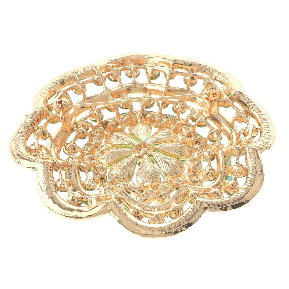 Gold Tone Alloy Metal Large Crystal Rhinestone Flower Brooch P1575-GRN