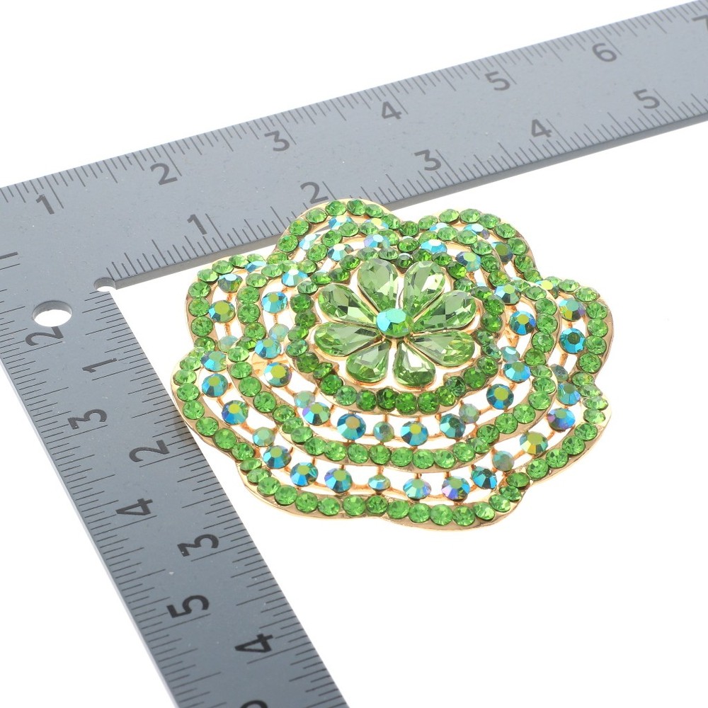 Gold Tone Alloy Metal Large Crystal Rhinestone Flower Brooch / Approximate Size: 3.25" L x 3.25" W / Rhinestone / Metal / Lead & Nickel Compliant / Color: Gold & Green Condition: Brand New SKU: P1575-GRN Color: Green Design: Flowers & Plants All orders will ship from USA via UPS or USPS. We expect all local orders will receive the items within 7 business days or less depend the location. Worry free international shipment delay or custom duty fee.
