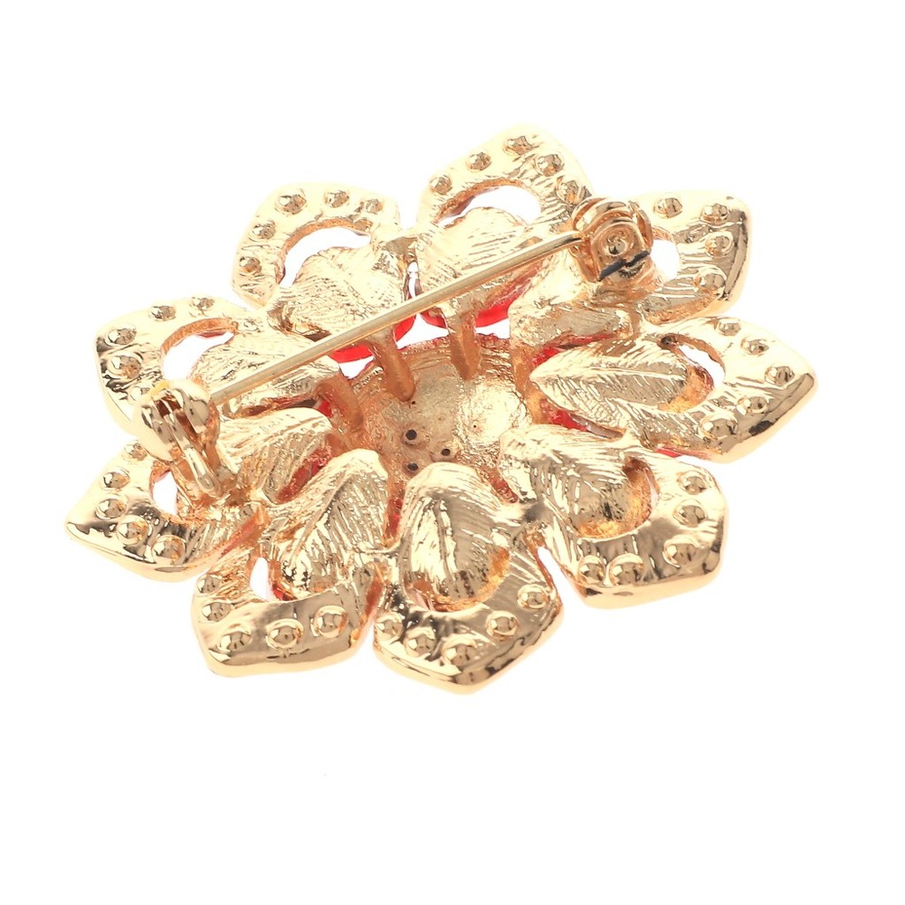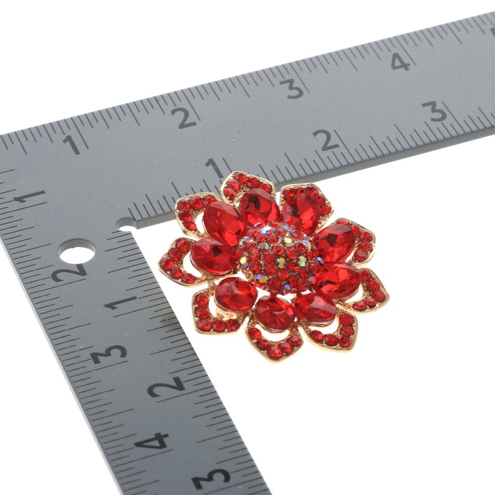Gold Tone Alloy Metal Medium Crystal Rhinestone Flower Brooch / Approximate Size: 2" L x 2" W / Rhinestone / Metal / Lead & Nickel Compliant / Color: Gold & Red Condition: Brand New SKU: P1582-RED Color: Red Design: Flowers & Plants All orders will ship from USA via UPS or USPS. We expect all local orders will receive the items within 7 business days or less depend the location. Worry free international shipment delay or custom duty fee.