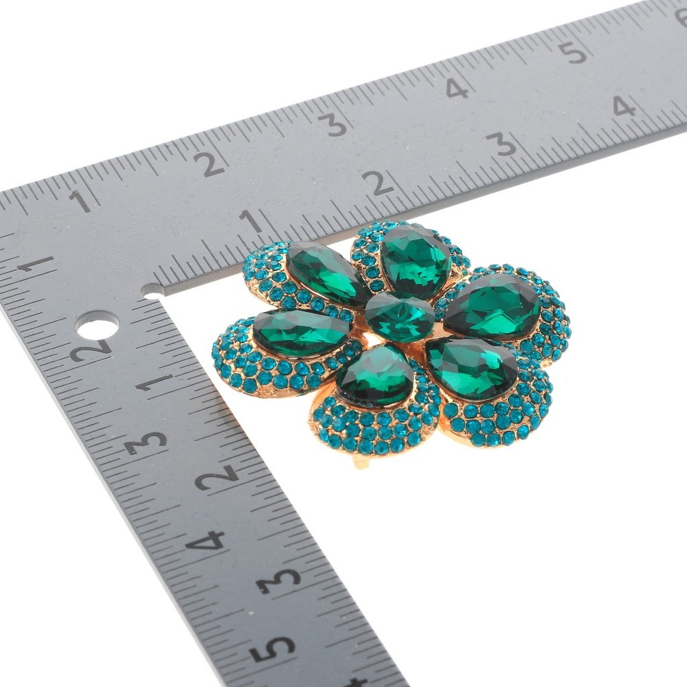 $ 8.45Gold Tone Alloy Metal Large Crystal Rhinestone Flower Brooch P1575-GRN
