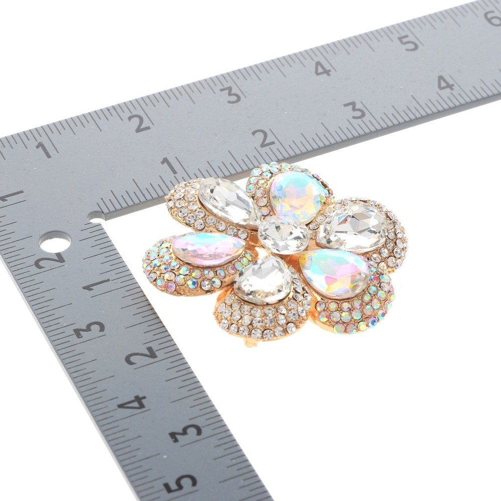 Gold Tone Metal Crystal Rhinestone Flower Brooch / Approximate Size: 2.5" L x 2.25" W / Rhinestone / Metal / Lead & Nickel Compliant / Color: Gold & AB Condition: Brand New SKU: P1254-GAB Color: AB Design: Flowers & Plants All orders will ship from USA via UPS or USPS. We expect all local orders will receive the items within 7 business days or less depend the location. Worry free international shipment delay or custom duty fee.