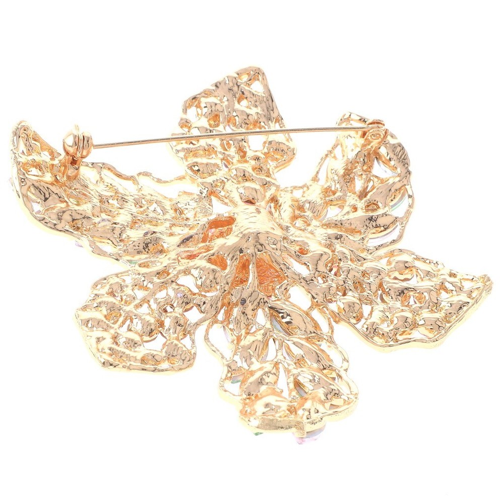 Gold Tone Metal Large Crystal Flower Brooch P1375-PKGN
