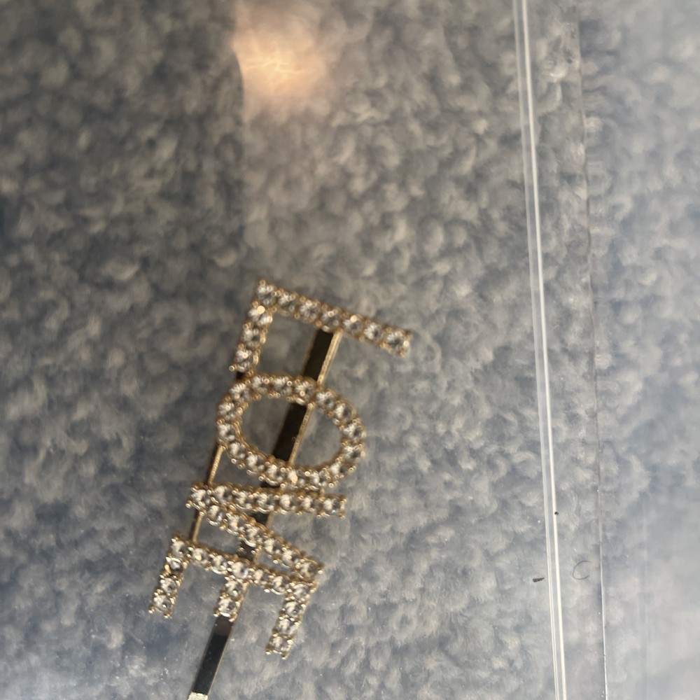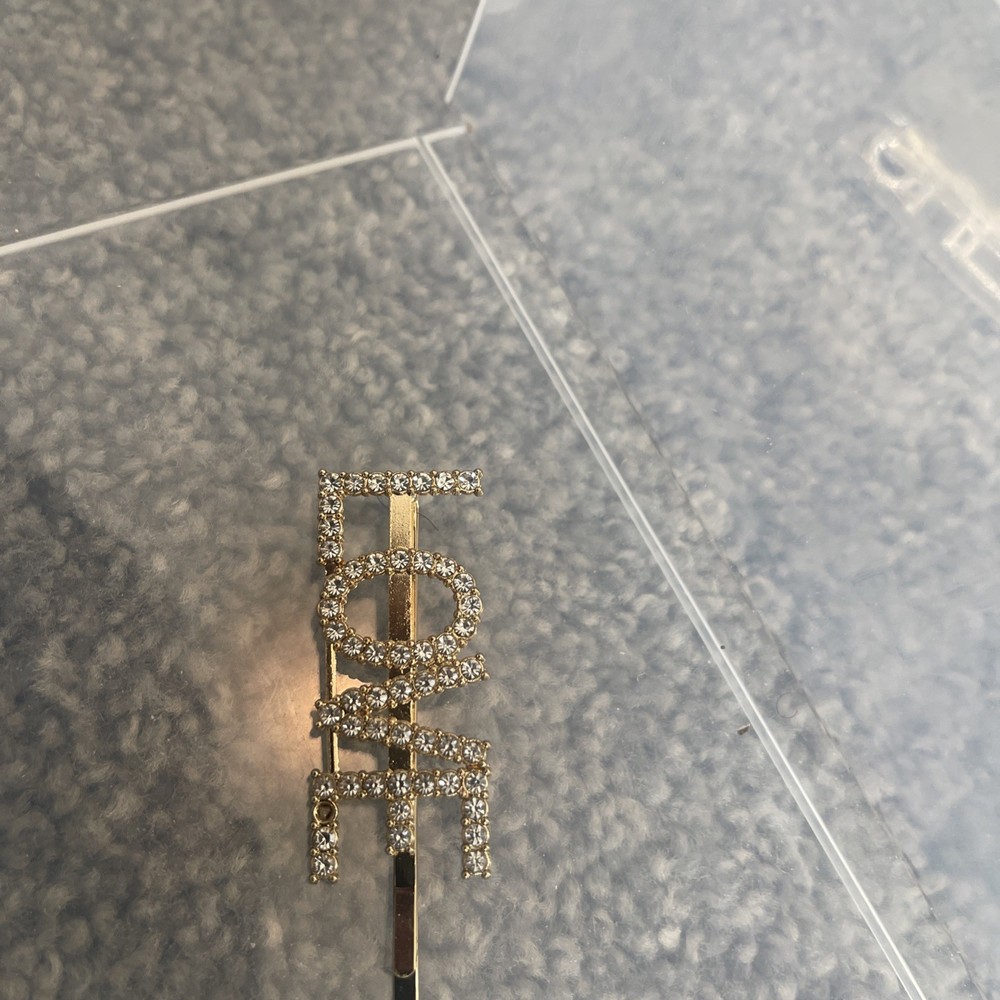 Gold Tone Rhinestone Love Sign Hair Pin - Bling Bobby Pin, Sparkly Glam. Condition is New with tags. Shipped with USPS Ground Advantage.
