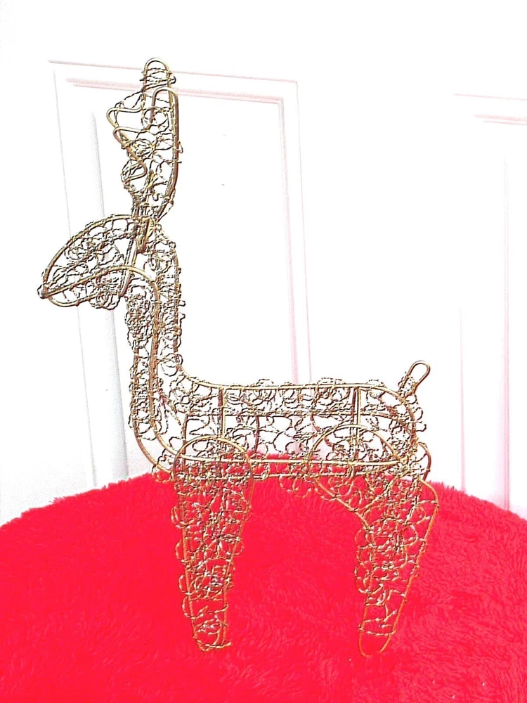 Gold Tone Sparkle Twisted Metal Wire Decorative Reindeer Measures: 15 inches tall 10 inches wide Finish: Metallic with Glitter Color: Gold Material: Metal Bring Beautiful Sparkle to your holiday decor This unique reindeer is made out of twisted metal wire Very sparkly and eye catching Would make a great mantle or table decoration In Excellent condition Please see Photos for more description COMES FROM A SMOKE FREE HOME Any questions please feel free to ask me Thanks for looking! Come and see my other items Powered by SixBit's eCommerce Solution