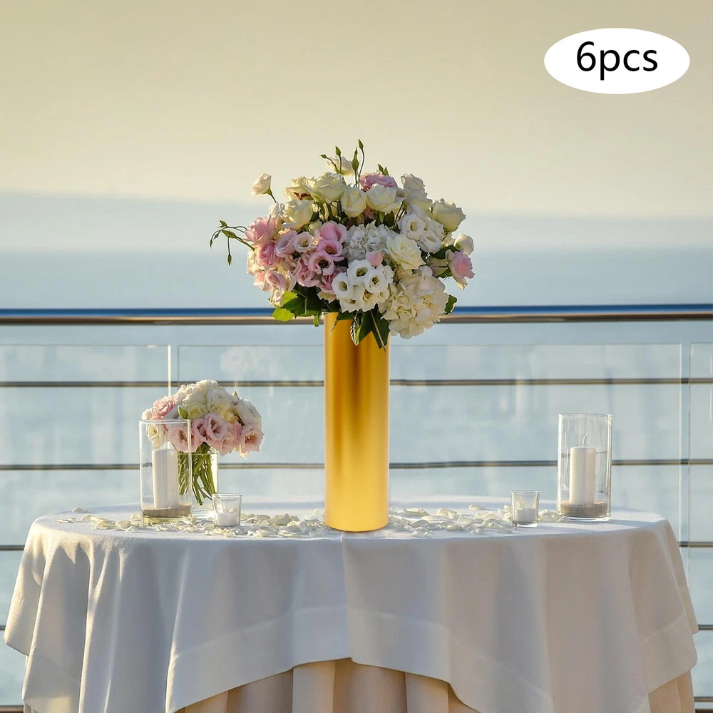 Description If you want to create a romantic atmosphere or like to arrange flowers, then our gold vases can help you to achieve it very well. It is made of iron that is strong, durable, not easy to break, and has a long life. Its golden look is very high-end and classy, and can be used to spice up your surroundings with flowers, wax, or candles. Key Features Sturdy and Durable: The item is made of iron with a baking paint treatment, making it resistant to deformation, oxidation, corrosion, rust, and high temperature. So it can remain practical and beautiful without frequent replacement. Wonderful Atmosphere: When you want a date, put flowers into it, the whole atmosphere will be more romantic, and your friend will certainly feel happy about that. Set of Six: The design of the six-piece Gold Vases for Centerpieces Wedding, Metal Flowers Stand, Vintage Trumpet Vase Welcome Description If you want to create a romantic atmosphere or like to arrange flowers, then our gold vases can help you to achieve it very well. It is made of iron that is strong, durable, not easy to break, and has a long life. Its golden look is very high-end and classy, and can be used to spice up your surroundings with flowers, wax, or candles. Key Features Sturdy and Durable: The item is made of iron with a baking paint treatment, making it resistant to deformation, oxidation, corrosion, rust, and high temperature. So it can remain practical and beautiful without frequent replacement. Wonderful Atmosphere: When you want a date, put flowers into it, the whole atmosphere will be more romantic, and your friend will certainly feel happy about that. Set of Six: The design of the six-piece set can be placed in different flowers to create different beautiful scenes to meet your needs. Elegant Appearance: The high-end gold color with the geometric beauty of the cylindrical shape makes it look very elegant and beautiful and is a great addition to decorating your home. Space-saving: With its compact size (3.94*12.6 inches), you can put it on your desktop without taking up too much space. Ready to Go: The one-piece construction allows the product to be used directly without assembly, so you can use it directly for flower arrangements when you receive it, which is very time-saving and convenient! Easy to Clean: Thanks to its simple construction and smooth surface, you can wipe the surface clean of stains with a damp rag. Ideal Gift: Because of its exquisite crafts, elegant appearance, and high practicality, the flower vase is a fantastic gift for housewarming, weddings, and other festivals. Protective Package: We have used air bubble bags to wrap this product, designed to minimize damage to the product during shipping. Details Round Edges: Smooth, burr-free edges are not only comfortable to the touch, but also enhance safety in use. Round Base : The 3.94-inch diameter rounded base helps add stability to the product so it is less likely to wobble. Applications It is suitable for adding decorative touches to houses, living rooms, dining rooms, bedrooms, fireplaces, tablecloths, dining tables, shelf decorations and offices. It can also be used as a decoration for Christmas, Thanksgiving, New Year, Valentine's Day, parties, dinners, festivals, birthdays or other special occasions, and can be used to hold flowers. Specification Material: Iron Color: Gold Style: Modern Shape: Column Process: Baking Paint Installation Type: Tabletop Assembly Required: No Number of Pieces: 6 Gross Weight: 5 kg/ 11.02 lbs Net Weight: 4 kg/ 8.8 lbs Package Size: 33*21*31 cm/ 12.99*8.27*12.2 in Each Product Size(D*H): 10*32cm/3.94*12.6in Package Included 6* Gold Vases Notes This product does not include flowers. Please allow the slight color difference caused by the shooting light and the 1-3 cm error due to manual measurement, and make sure you do not mind before ordering. Payment Delivery details Terms of sales About us Contact us Payment We accept ebay payment 。 Fees such as import duties, taxes are not included in the item price or shipping costs. These charges are the buyer's responsibility. Delivery details Shipping: 2-9 working days to: USA Terms of sales We maintain high standards of excellence and strive for hundred percent customer satisfaction. Feedback is very important to us. We hope that you contact us immediately before you give neutral or negative feedback, so that we can address your concerns. It is impossible to address issues if we do not know about them! About us Your satis faction is our ultimate goal. We work hard to earn your trust and future business. Our certified technicians have tested each item before shipping. The unit comes with 1 year limited warranty on all manufacturing defects. a) If you receive a defective item, you may return it or ask for a discount. Please contact us within 14 days after you receive the package. b) What you returned must be intact and in its original packaging as re? u. Customer is responsible for shipping costs of the returned item. c) We will cover the cost of shipping back t with the shipping rate indicated in the registration page. We will send you a new unit or refund the full payment you paid. Thank you. Contact us Business Hour Business Hour: Monday To Friday: 8:30 AM to 5:00 PM (Beijing China time) Due to time zones, our reply to your questions may not be immediately. But within above working time, we will reply your email within 24 hours. If it's non-workdays, please kindly be patient and wait till Monday. Please contact us with ebay message. Please feel free to contact us if you have any questions. Monday To Friday: 8:30 AM to 5:00 PM (Beijing China time) Due to time zones, our reply to your questions may not be immediately. But within above working time, we will reply your email within 24 hours. If it's non-workdays, please kindly be patient and wait till Monday. Please contact us with ebay message. Please feel free to contact us if you have any questions. Feature Compact Design,Convenient U