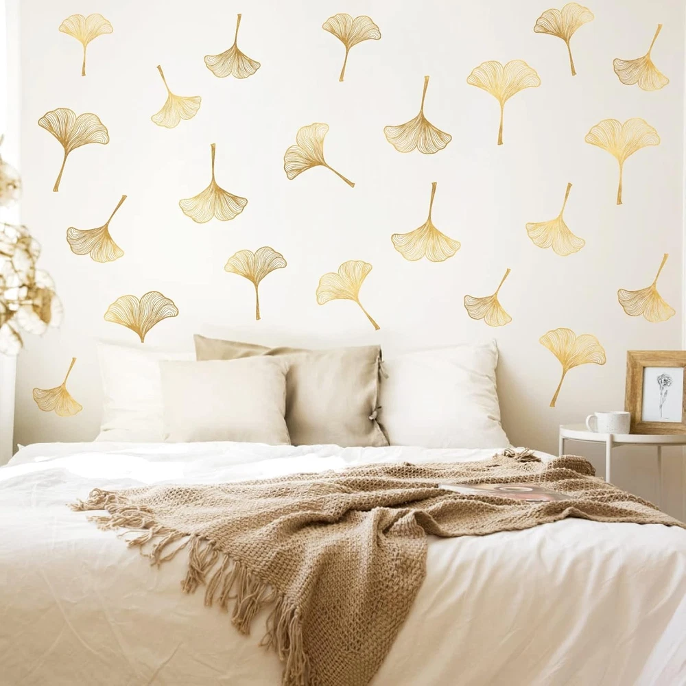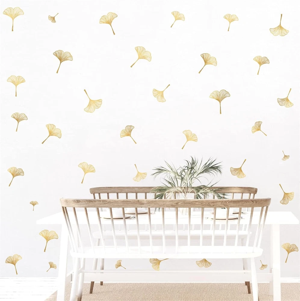 Gold Wall Decals Gold Leaves Wall Decals Peel and Stick Modern Leaf Wall Sticker