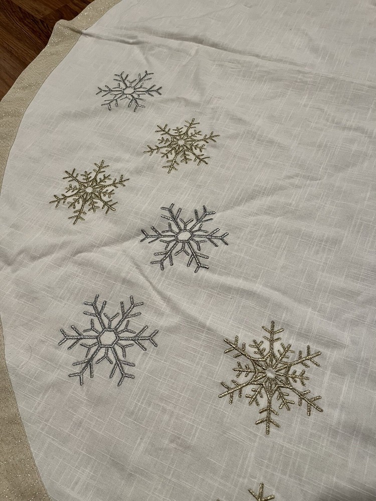 Gold & Silver Snowflake 53" Tree Skirt w/Gold Band & Silver "Glitter" Speck. Beautiful and elegant.