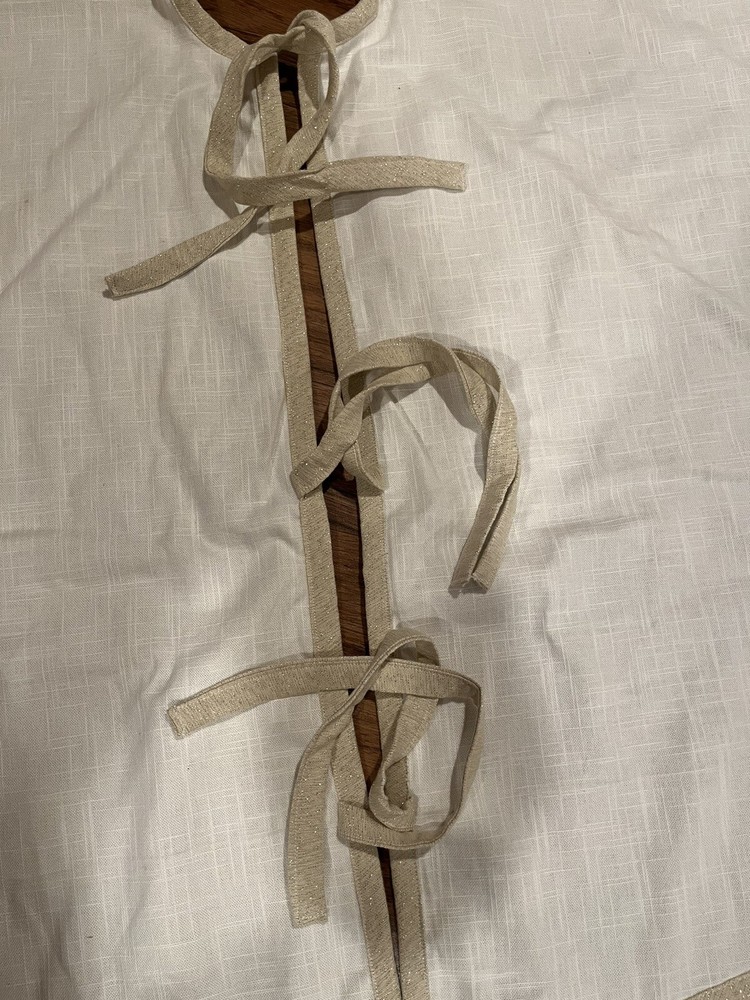 $ 52.42VTG Handmade 37in Christmas Tree Skirt Felt Metallic Gold Fringe Beaded Sequin
