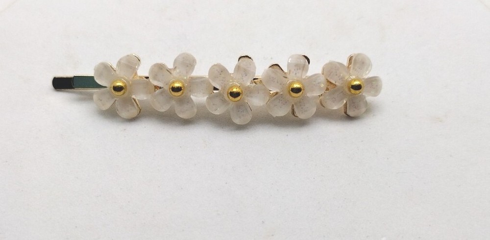 Gold-Toned White Daisy Hair Clip Bobby Pin for Side-Swept Styles