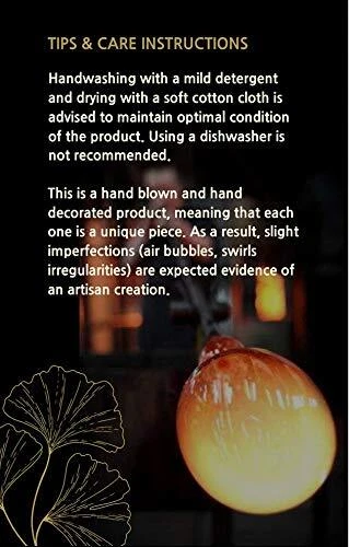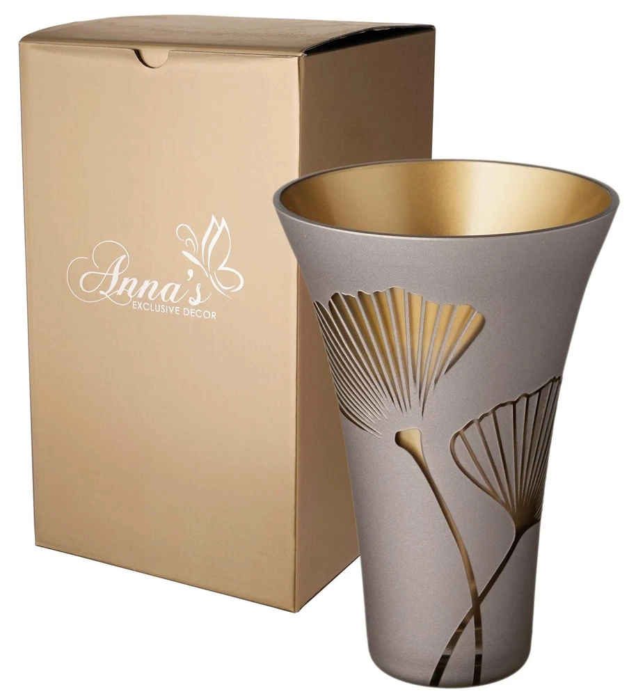 Nature Inspired Collection Hand-crafted and decorated finest quality glassware decorated with beautiful motifs inspired by nature. About this item This unique centerpiece has been carefully handcrafted and decorated in Poland - famous for its long history of hand-made glass production. The exceptional quality of this product is achieved with time-honoured blown glass techniques that are executed manually by skilled local glassblowers. Combining excellent workmanship with the latest technology, design and decoration techniques allows the creation of elegant centerpieces that are unique in their appeal. Glass products from Poland are famous and generate interest among customers all over the world. About the process The following three stages of the manufacturing process are executed manually, making each product unique: Stage 1: several minerals including silica sand and soda limestone are carefully measured and melted in a furnace at temperatures reaching 1700°C. Stage 2: a skilled glassblower gathers molten glass at the end of a hollow tube, mouth-blows into the tube while rotating it, using various tools and gravity to create a variety of forms, including vases, bowls, decanters etc. Bubbles of air can sometimes get trapped within the molten glass (and are occasionally visible in finished products) which is an acceptable and authentic part of handmade, mouth-blown glass. After achieving the desired shape, the glassblower cools the molten glass object down. Stage 3: an experienced artisan decorates the glass items using various decorative techniques. Depending on the desired result, the item is sandblasted and/or engraved and hand painted to create a unique glassware product. HANDMADE glass flower vase: mouth blown by a glassblower and hand decorated by an artist. Thanks to the manual production, each vase is a unique centerpiece: slight imperfections (air bubbles, irregularities) are an authentic evidence of an artisan creation. Every glass ornament from the 'Nature Inspired Collection’ is designed and made in EUROPE. FINEST MATERIALS: this classic flared vase is made of premium glass with smooth cut edges. A heavy bottom and thick walls will ensure stability for your favourite flower bouquets. Unlike crystal glassware, this beautiful vase is made of safe 100% LEAD-FREE glass. TIMELESS DESIGN: this beautiful pearl brown vase is accented with etched and painted golden ginkgo leaves decor, and painted gold inside to create a stunning contrast and add an elegant touch to any interior. This skillfully handcrafted vase will look beautifully on its own, as well as part of a flower arrangement. GIFT BOXED: dispatched in a golden gift box which will make this elegant centerpiece an original present for many occasions, including: birthday, golden anniversary, wedding, housewarming, Christmas, Easter, Mother's Day, Valentine's Day, First Communion etc. Ideal as a home or office decor accent or as a wedding centerpiece. MEASUREMENTS: 9.4 x 6.5 in (24 x 16.5 cm). CARE INSTRUCTIONS: hand-wash only, dry with a soft cloth. Create an ELEGANT SET with a matching vase: https://www.amazon.com/dp/B08FZ1QN7K and a bowl: https://www.amazon.com/dp/B08FZ11L65
