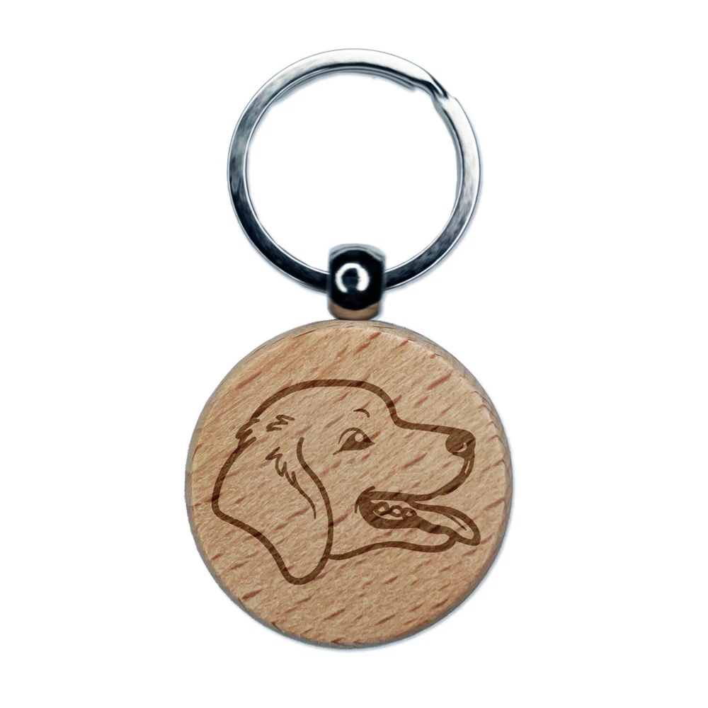 Golden Retriever Head Engraved Wood Round Keychain Tag Charm