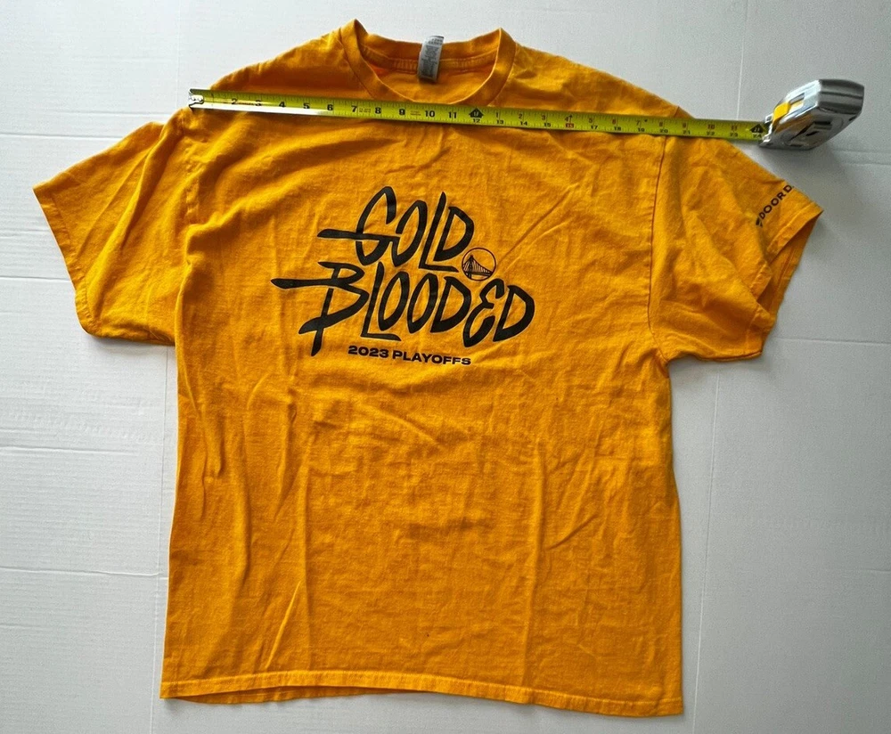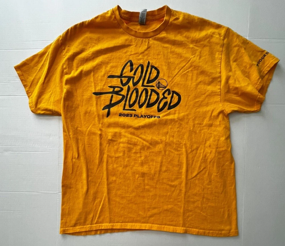 Get ready for the 2023 NBA Playoffs with this Golden State Warriors T Shirt. The shirt comes in a stunning gold color and is designed for fans of all genders and ages. Show your support for the team with this XL size shirt that features the name of the team and the event/tournament mentioned on it. The shirt is made of high-quality material and is perfect for any basketball fan, especially those who love Stephen Curry and the National Basketball Association (NBA). This product belongs to the sports memorabilia category, specifically the basketball-NBA section of the fan apparel and souvenirs. Get this shirt now and be ready to cheer on your favorite team in style.
