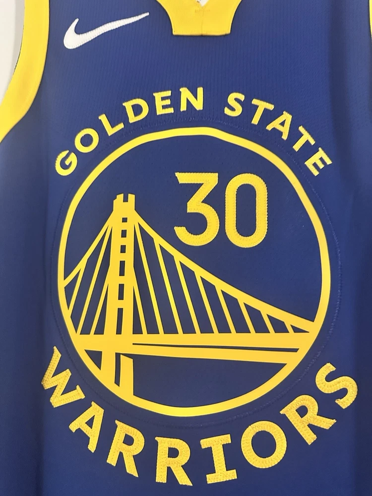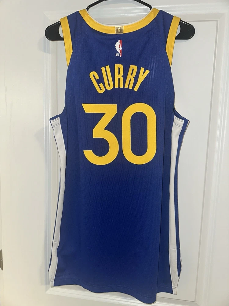 Player:Stephen CurryColor:BlueSport:BasketballGender:MenTeam:Golden State WarriorsSize:44League:National Basketball Association (NBA)Officially Licensed:YesBrand:NikeProduct:Jersey