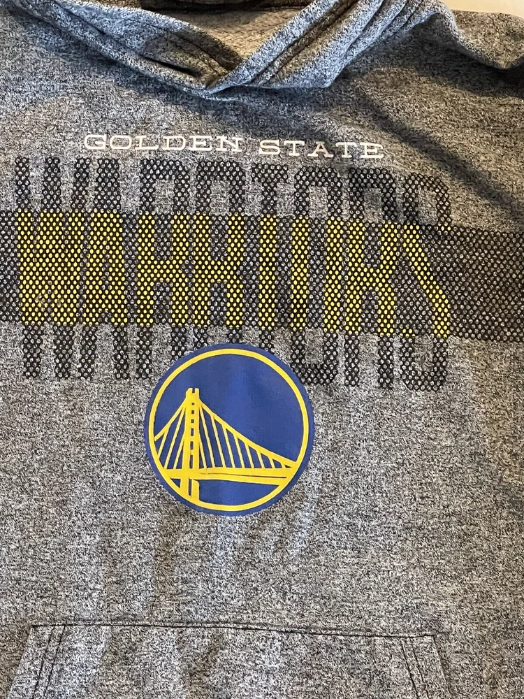 Show your love for the Golden State Warriors with this officially licensed NBA hooded sweatshirt. The gray sweatshirt features the team's logo on the front and is made of comfortable material that will keep you warm during the regular season. It is designed for unisex children in size XL (18/20) and is perfect for any basketball fan. Whether you are going to a game or just showing off your team spirit, this sweatshirt is a great choice. It is made in China and is perfect for any occasion. Get yours today and show your support for the Golden State Warriors!