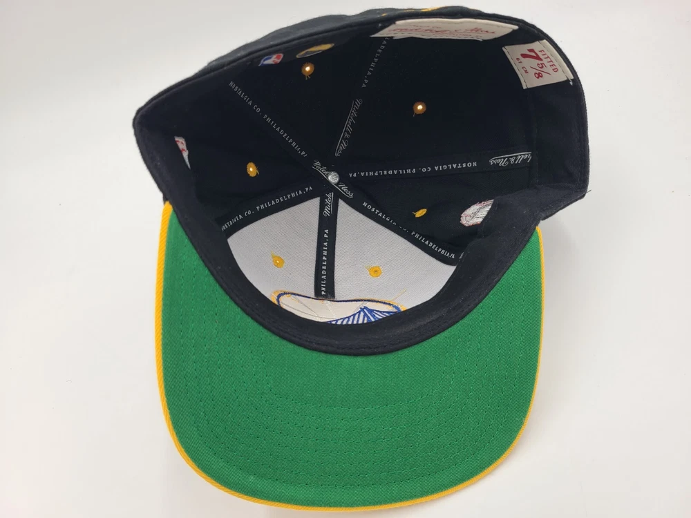 Golden State Warriors Mitchell & Ness Fitted 7 5/8 Hat Cap Men NBA Black Yellow. EACH ADDITIONAL HAT PURCHASED IS ONLY $1 ADDED SHIPPING!