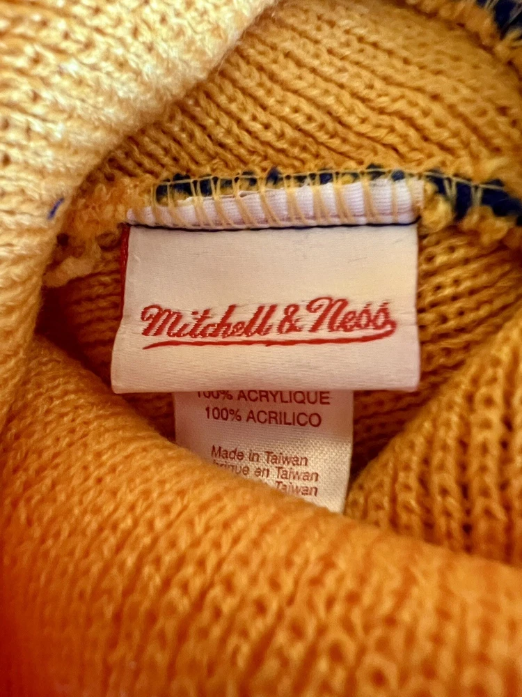 Golden State Warriors Mitchell & Ness Hat With Pom - Unisex Adult - Blue & Yellow. New. Never worn.