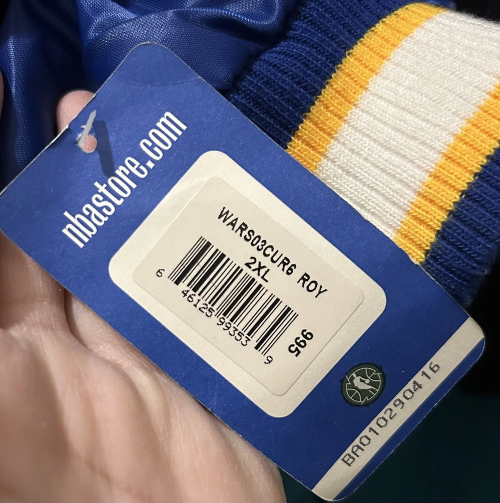 Size:2XLProduct:JacketCountry/Region of Manufacture:ChinaColor:Black/BlueLeague:National Basketball Association (NBA)Team:Golden State WarriorsPlayer:Stephen CurrySport:BasketballBrand:JH DesignGender:Men