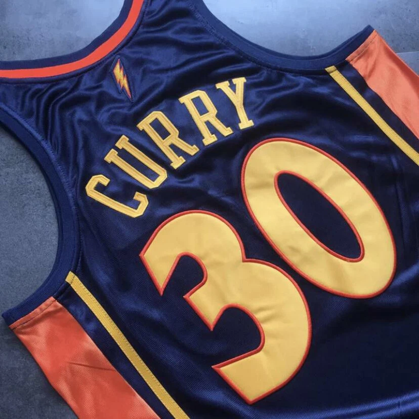 Golden State Warriors Stephen Curry blue basketball retro jersey