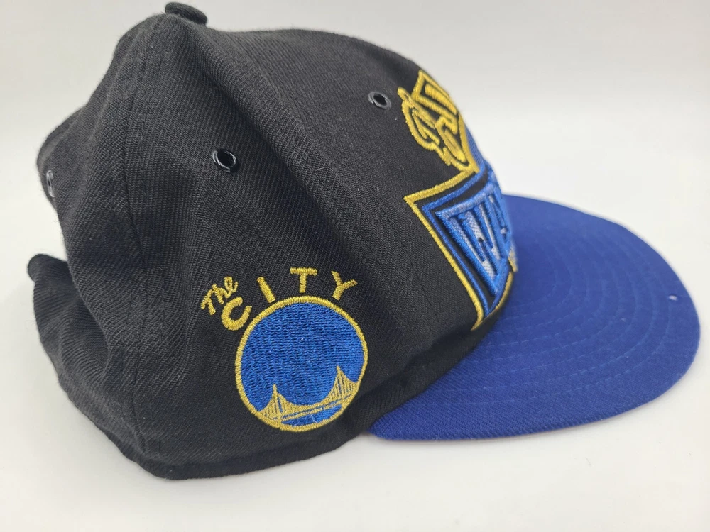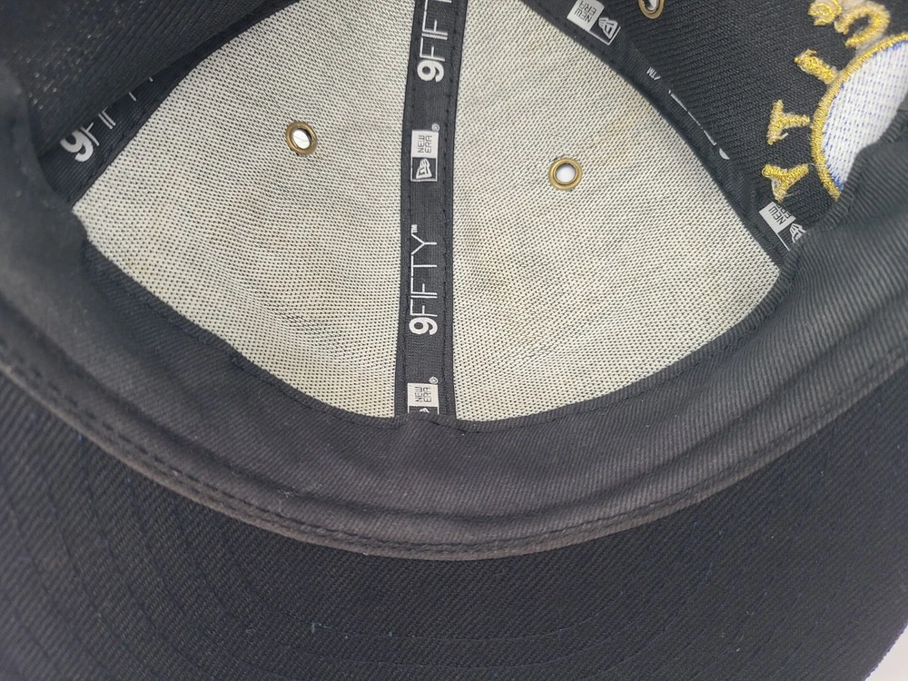 Has a couple small tears on the brim and side as seen in photos. Also has some wear underneath the brim. Golden State Warriors The City New Era 9Fifty Hardwood Classics Snapback Hat Cap. EACH ADDITIONAL HAT PURCHASED IS ONLY $1 ADDED SHIPPING!