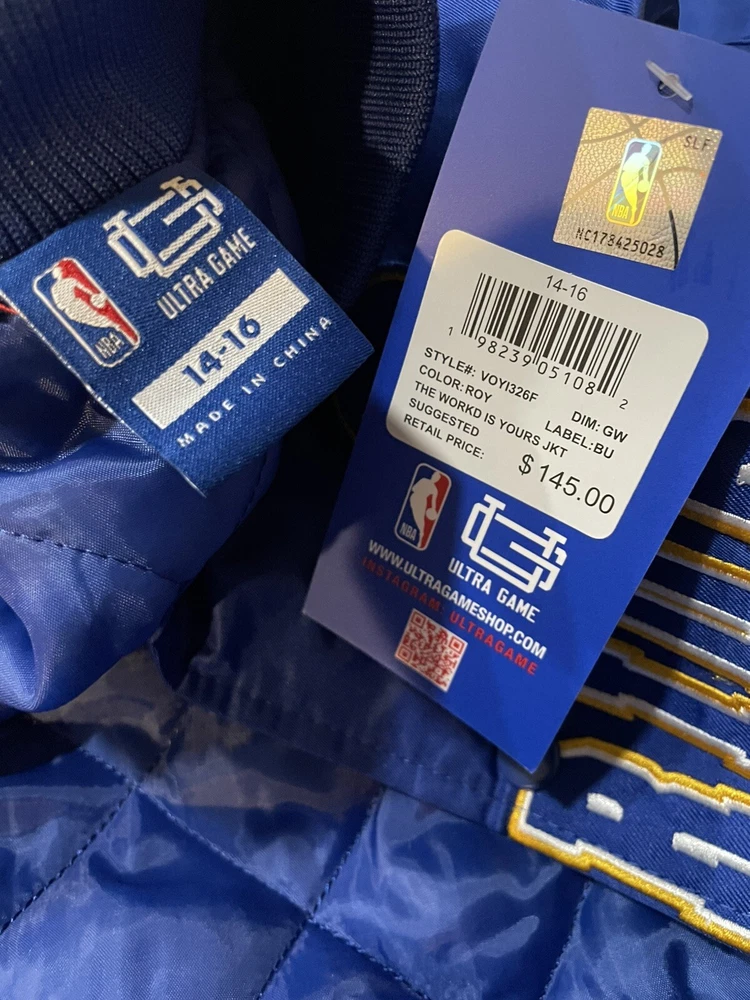 Show your love for the Golden State Warriors with this officially licensed Ultra GAME youth jacket. Perfect for unisex children, this blue jacket features the team's logo and is sized for Large (14-16). great for basketball fans, this jacket is perfect for game days or everyday wear. Made for the National Basketball Association (NBA), this jacket is a must-have for any young fan. Whether you're cheering on the Golden State Warriors at home or at the game, this jacket is sure to make you stand out. Don't miss out on the chance to show your support for your favorite team!