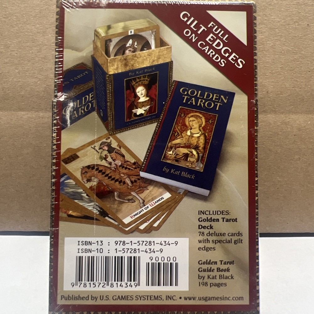 Item Height:2.3Item Weight:17.6 OzTopic:Divination / TarotPublisher:U.S. Games System-S, IncorporatedBrand:U.S. Games SystemsIllustrator:YesBook Title:Golden Tarot. KartenPublication Year:2004Genre:Body, Mind & SpiritAuthor:Kat BlackNumber of Pages:120 Pagesgtin13:9781572814349Language:EnglishUPC:084626002280Manufacturer:U.S. Games SystemsISBN:1572814349Item Length:4.8 inEAN:9781572814349Format:Trade PaperbackItem Width:2.8 in