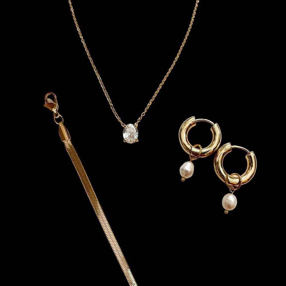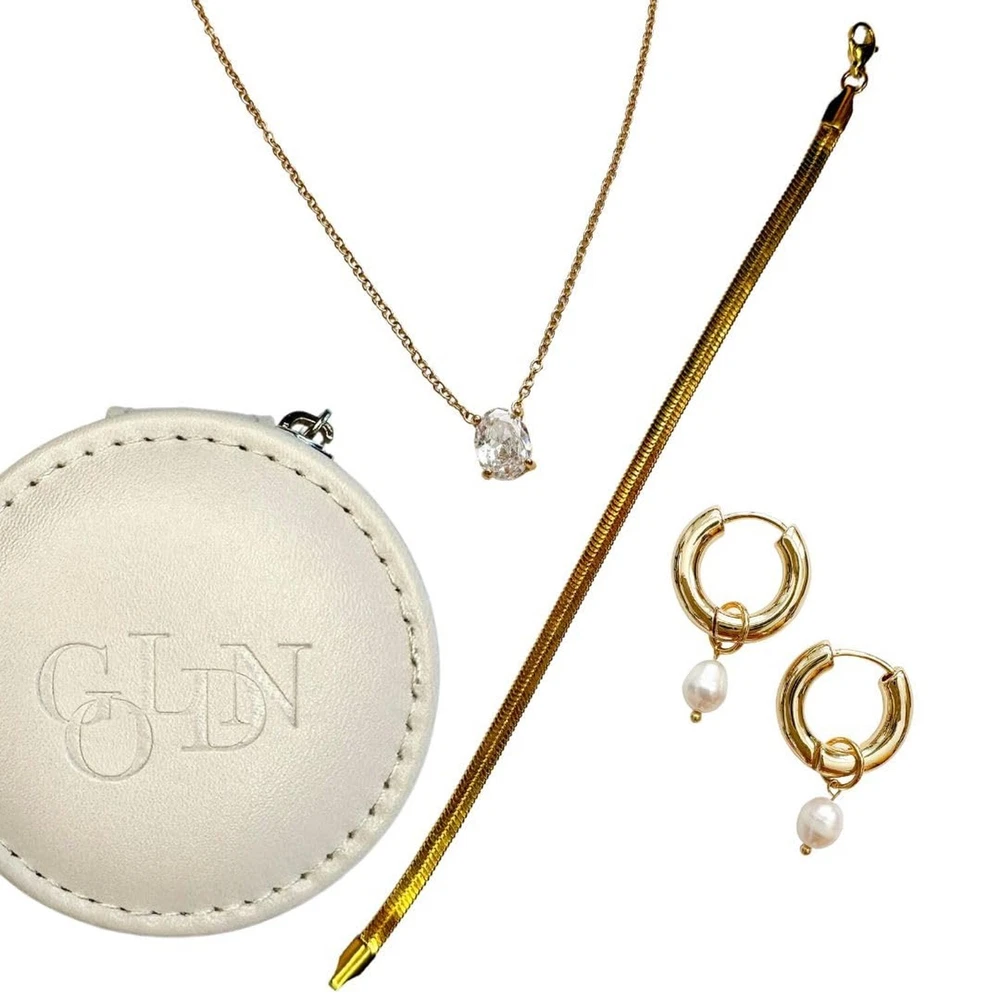 Goldn 3 Piece Jewelry Set for Women, Real Gold Plated Luxury Gifting Product Details Style: Minimalist Brand: Goldn MPN: Does not apply UPC: Does not apply EAN: Does not apply Department : womens Date First Available : August 14, 2023 Brand, Seller, or Collection Name: Goldn Metal stamp: GP STAG Metal: gold plated stainless steel Material: Sterling Silver, Gold, Stainless Steel Gem Type: Cubic Zirconia, Pearl, Diamond Clasp: Lobster Clasp Number of stones: 3