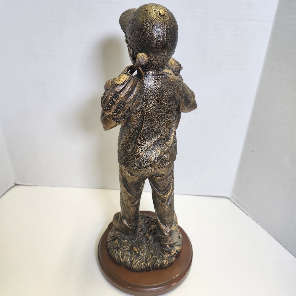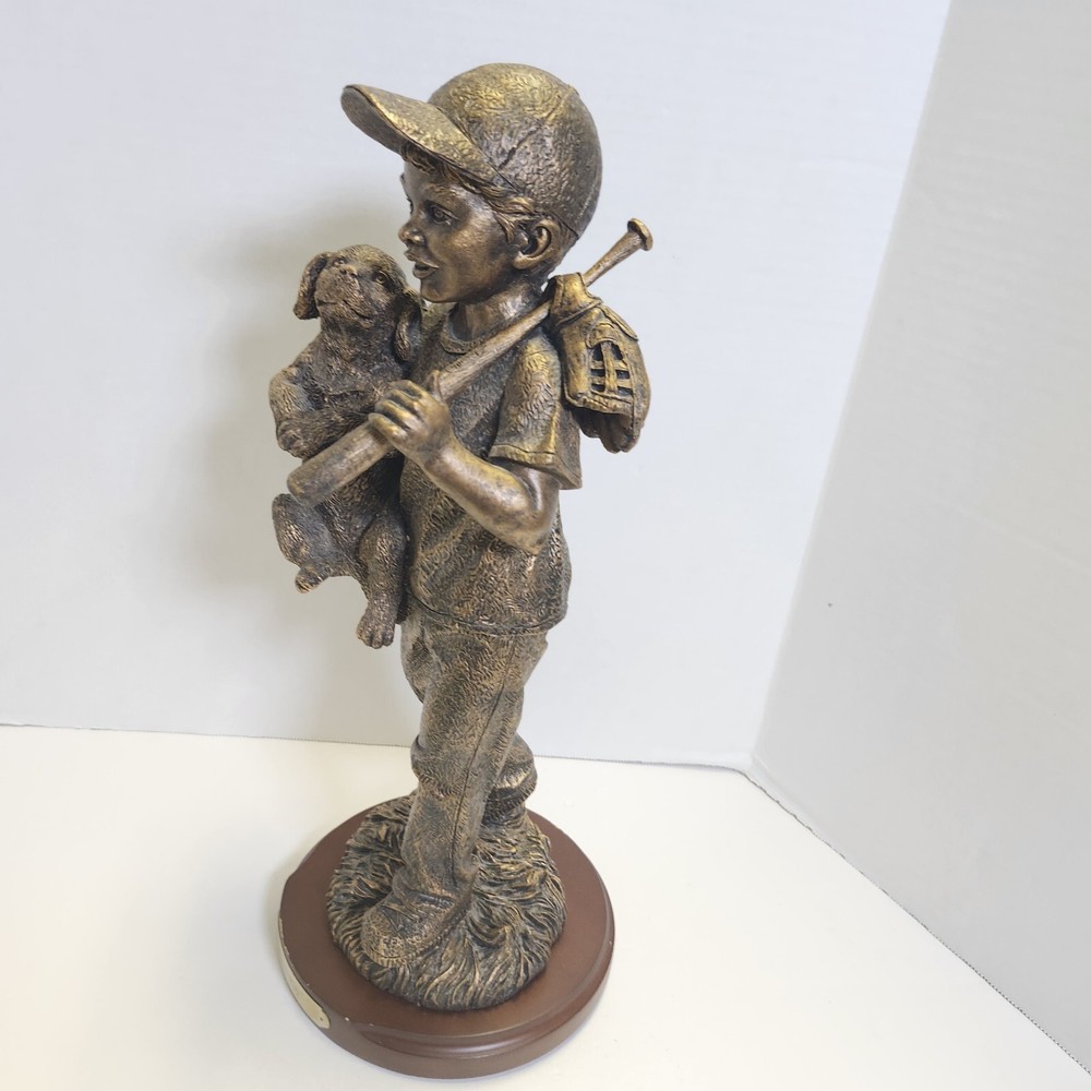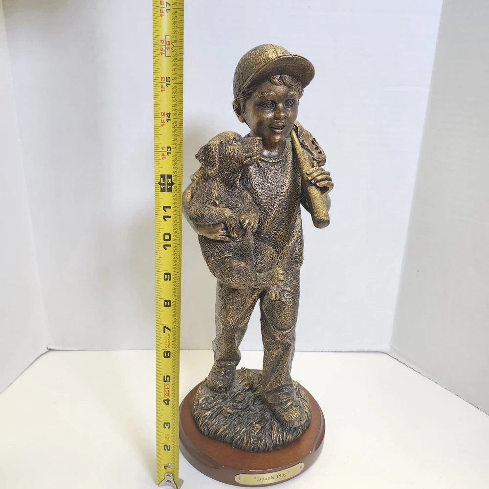 Goldtone 7X16" Double Play Basedball Player Boy & Dog Art Sculpture Figurine . Condition is Used. Shipped with USPS Ground Advantage.