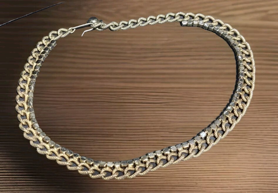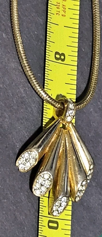 This stunning necklace features a beautiful white rhinestone that sparkles in the light. The piece is made of multi-tone gold and has a flush setting style. The necklace has the 5 finger fan pendant, which is 17 inches in length, and the double chain textured chain is adjustable 15" long. Unfortunately, Sly the Fox is not for sale he is my fashionistas maskscot model. If you have any questions, please feel free to contact me on eBay messenger! Very motivated seller and will accept any respectable counter offer sent in my direction! Thank you so much for reading this post from Foxy Stang Upcycler Store! 🦊Have A Wonderful Foxy Stang Day!!!!🦊