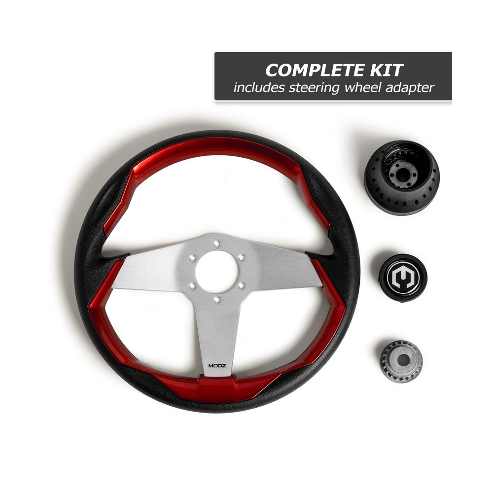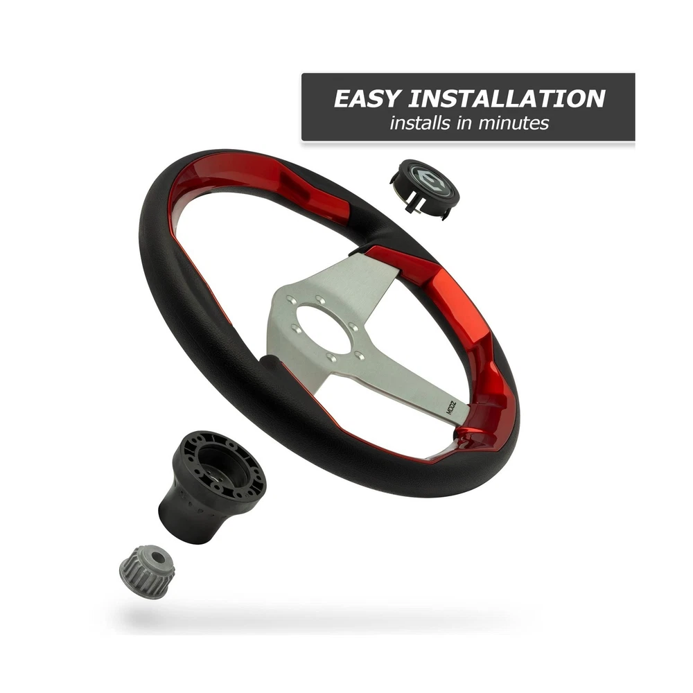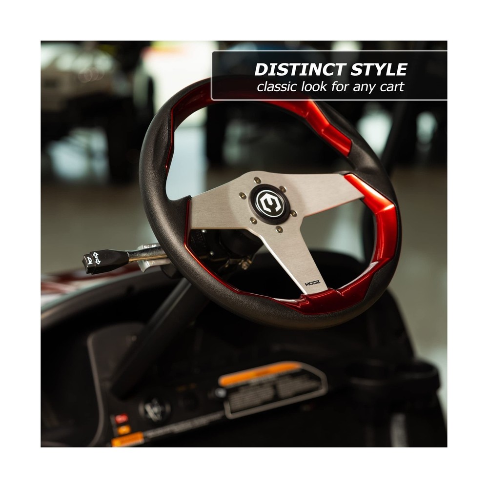 MODZ Zilker Golf Cart Steering Wheel with Adapter - Fits All EZGO Models - Carbon Fiber and Black Description Features: Premium Brushed Aluminum Finish Quick & Easy Installation No Flex, Rigid Single Piece Construction Ergonomic Design for Improved Grip & Comfort Made in Italy Product Details: Color: Carbon Fiber and Black Material: Aluminum, Carbon Fiber Brand: MODZ Fit Type: Vehicle Specific Fit Number of Spokes: 3 Vehicle Service Type: Golf Cart UPC Automotive Fit Type: Vehicle Specific Fit Color: Carbon Fiber and Black Material: Aluminum, Carbon Fiber Brand: MODZ Fit Type: Vehicle Specific Fit Number of Spokes: 3 Vehicle Service Type: Golf Cart UPC: 840088447102 Automotive Fit Type: Vehicle Specific Fit Manufacturer: MODZ Model: Zilker Manufacturer Part Number: G1-9619+G1-9613 Date First Available: May 8, 2023 Delivery We Do Not Ship Outside of the Continental US. Return Policy All items qualify for returns within 30 days of receipt. Buyer is responsible for return shipping on any item that is not damaged. Feedback We take our reputation seriously, we buy and sell online, so we understand the value of trust. If you are unsatisfied with your order, please contact us and we will work with you to resolve it to your satisfaction.