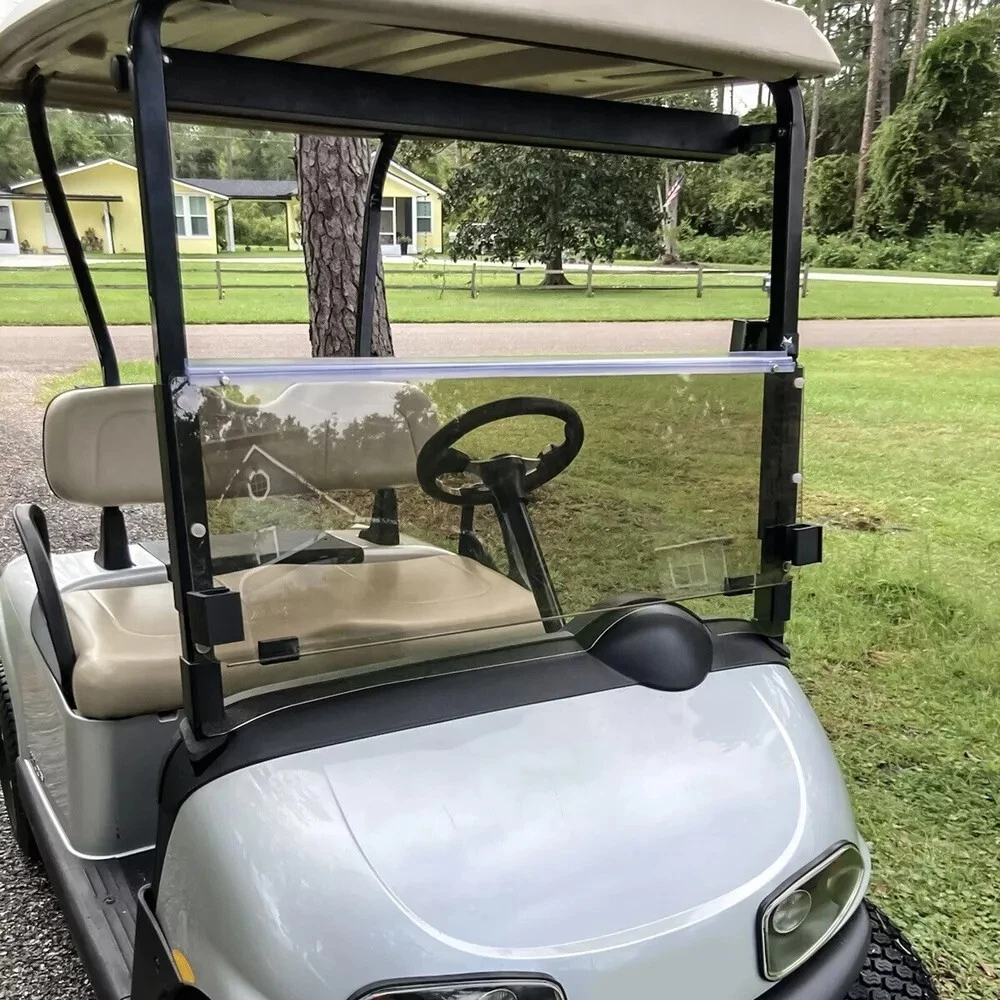 Golf Cart Tinted Polycarbonate Folding Windshield Windscreen For EZGO RXV 08-UP Description It is super suitable for 2008-up RXV MODEL. It provide better head protecting and you can ride more safety. The windshield can prevent raindrops, dust and other small particles from blowing into your eyes, allowing you to see the road ahead without affecting your vision, It can also prevent you from being scratched by dangerous things such as branches while driving, ensuring timeliness and safety in work and enhancing your outdoor experience. Feature Folding golf cart windshield High Quality snug fit-No Drilling required! Shatter & crack-resistant, Durable for long time using and so practical. Made from tinted Polycarbonate Installation hardware included - easily attaches to your existing frame. Easy to use,to install and to operate at affordable prices Golf Cart Tinted Fold Down Winshield for EZGO RXV 2008-up, made of PC, thickness over ordinary windshields, has high strength impact resistance and durability. High definition provides better visibility. Replace your old windshield and improve your appearance. The unique split design and foldable design by rotating clips allows you to open the windshield upward to block the wet and cold wind in winter and fold it downward to blow the air in summer. Specification Condition: 100% Brand New Size: W 37-7/8(in) * H 30-3/8 (in) Model: BNL-60-S Material:Polycarbonate Color: Tinted Impact Resistant Folding Style Fits For RXV MODELS (2008-PRESENT) GAS OR ELECTRIC CARTS Package Include 1 x Windshield Windscreen All Mounting hardware Included