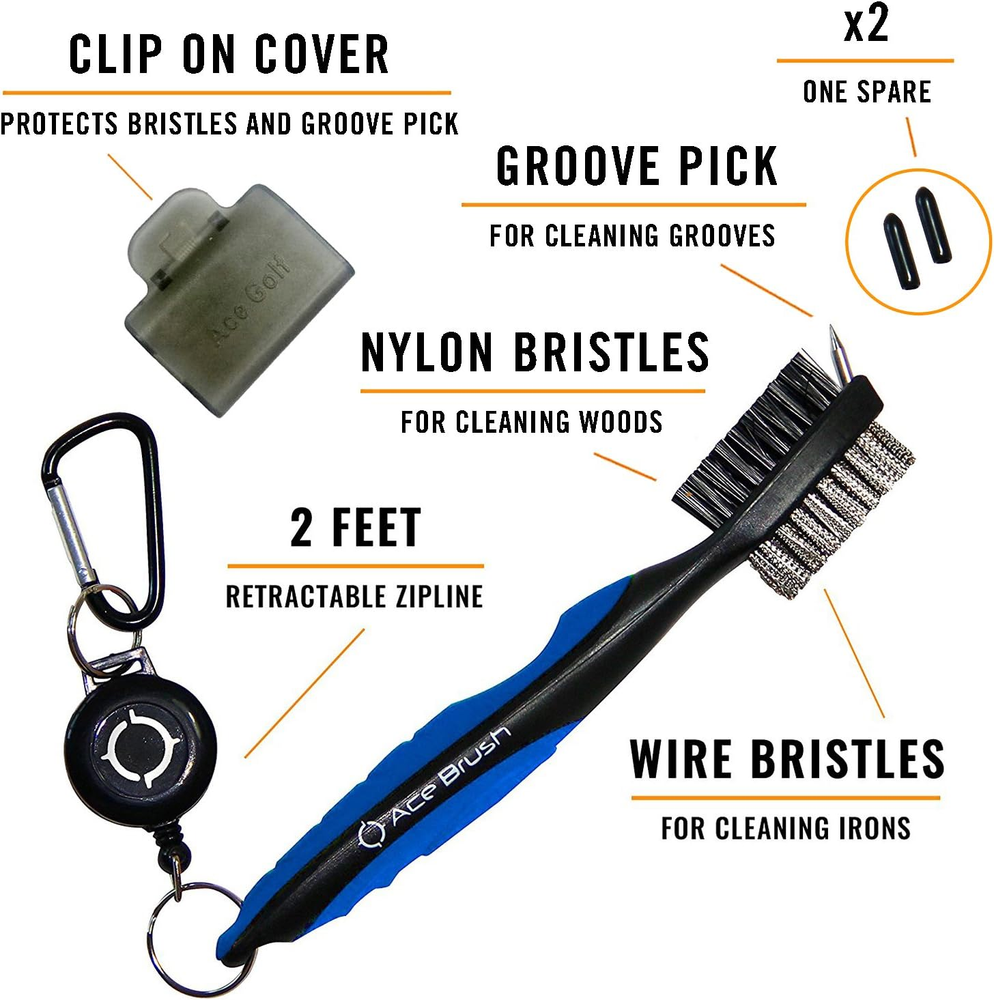 Store New Arrivals Add to Favorite View Feedback Contact Fast deliveries to the customer's home Quality customer service John Make the customers happy! Golf Brush and Club Groove Cleaner Set with Divot Tool, Ball Marker, Groove Sharpener, 2 Ft Retractable Zip-Line Aluminum Carabiner, Lightweight, Ergonomic Design, Attaches Golf Bags Description GOLF LIKE A PRO: Wire bristles for quick and efficient cleaning of irons while on the fairway and nylon bristles for easy cleaning of woods. Sharp pick for stubborn dirt and grime in grooves. This will help you make better contact. Each golf brush comes with its own cover to protect the bristles and pick. POWERFUL CLEANING FOR OPTIMUM SPIN ON THE BALL AND BETTER CONTACT STYLISH and DURABLE / EXCELLENT GOLF GIFT IDEA: Looks great hanging off any golf bag and perfect for the avid golfer who enjoys a clean club for each swing. CONVENIENT ACCESS: The retractable 2 ft. zip-line carabiner makes it easy to attach to your golf bag for blazing fast access. INCREDIBLE COMFORT: With a unique, ergonomic design, this golfing brush fits snugly in your hand and will work with you, not against you as you chip away at dirt on your clubs. Product Description ✓ Designed by Golfers for Golfers. ✓ Quality, efficient and compact, this 3 in 1 Golf Club Cleaning Brush by Ace Golf is the absolute best solution to your concerns. ✓ Each golf brush comes with its own cover to protect the bristles and groove pick. ✓ The brush is beautifully designed and bound to draw attention. But the Ace Deluxe Golf Club Cleaning Brush isn’t all about appearances. With wire bristles for irons and nylon bristles for woods, this brush delivers the most thorough cleaning of your golf clubs in minutes. ✓ Due to being extremely sharp, the bristles can successfully pick even the most stubborn dirt, ensuring that your golf clubs will be performing at their best each and every time. ✓ The retractable zip-liner carabiner can be expanded up to 2 feet, allowing golfers to attach the brush to their golf bags for easy storage and fast access. ✓ With an ergonomic handle that provides an outstanding grip, this tiny cleaning brush by Ace is a must-have for golf enthusiasts. Part Number 43235-30504 Color Blue - Deluxe Package Weight 0.23 Kilograms Item Weight 0.49 Pounds Included Components Brush Item Package Dimensions L x W x H 8.15 x 3.03 x 1.42 inches Size One Size ABOUT US We offer the best prices around on high quality products. Our E-store includes media such as books, movies, music and games while offering electronics, toys, sporting apparel, clothing, tools, general home, garden items and more. SHIPPING We are always working hard to ensure your package arrives as soon as possible. Please understand that some factors like weather, high postal traffic, and the performance of shipping companies are outside of our control. We offer free shipping to the lower 48 states and ship within 2 business days of payment, usually sooner. We do not accept P.O. Boxes. Please provide a physical address. For shipping outside of the continental USA, we only use eBay's Global Shipping Program. The item is shipped to KY and then sent to the rest of the world. International customers are responsible for all duties and taxes. Continue to 'check out' to calculate costs for shipping the item to your country. Messages regarding eBay's Global Shipping Program MUST be directed at eBay EXCLUSIVELY. RETURNS We offer a 30-Day Return Policy on items in which you are not completely satisfied with. You have the option of a full-refund or an exchange of the item. No returns are available on items shipped outside of the USA PAYMENT We accept PayPal. CONTACT US This page content is yet to come Please ad us to your favorite seller and visit again later Thank You CUSTOMER SATISFACTION We try our very best to make sure every customer is completely satisfied. If there's a problem, message us! We're happy to help. WE ACCEPT