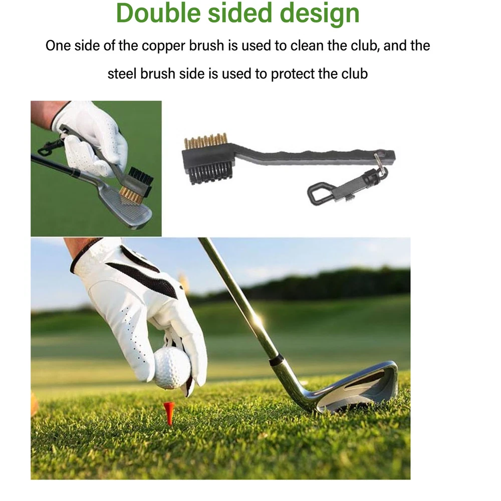 Feature: 1. Premium Material: The cleaning brush is made of superior copper, PP and steel, ensuring durability and reliability in keeping your clubs clean and in top notch condition. 2. Dual Sided Design: Copper brush on one side for cleaning golf clubs and a steel brush on the other for safeguarding club poles, providing you with a comprehensive tool to maintain your equipment. 3. Effective Cleaning: This cleaning brush excels at effortlessly removing dirt and impurities, leaving your golf clubs sparkling clean, and performing at their best. 4. Portable Convenience: Compact and lightweight, our cleaning brush is the perfect companion on the golf course. It fits conveniently into your golf bag, ready for use whenever required. 5. Versatile Use: Cleaning brush is multifunctional and suitable for a wide variety of golf clubs, helping to maintain them in optimal condition for those perfect swings. Specification: Item Type: Golf Club Cleaning Brush Material: PP+Copper+Steel Package List: 1 x Cleaning Brush