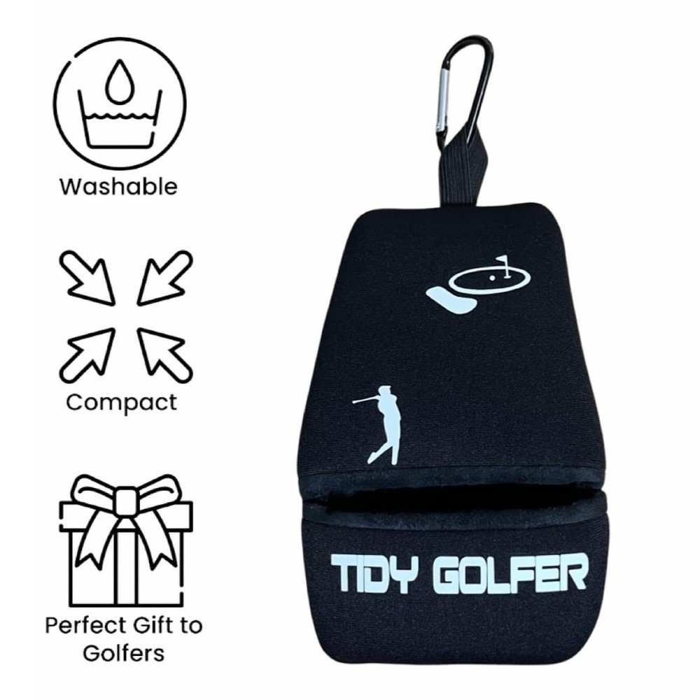The golf ball cleaner pouch scrubs deep into irons giving you the opportunity to clean your Irons quickly and efficiently on the course. Clean golf balls and irons increase accuracy and eventually improve your score because now you are sure your ball rolls straight and flies true. Towels get dried out, misplaced, lost and they are bulky to use. portable golf ball cleaner has a large cleaning area and you will be surprised how good a cleaning job it can perform. Golf iron cleaner is made of durable waterproof material, the pouch cleaner stays wet on the inside and dries on the outside. It cleans both golf irons and golf balls. is able to clean after every shot. Compact and easy to use, stays out of the way till needed. Never be caught with a dirty ball because of broken or missing washer balls on the course again. Just slip your golf ball into the , rub it around the microfiber lining, and you have a clean ball ready for your next shot. The Golf ball cleaner can clip on to golf bag or belt loop. Just add a small amount of water into the top section and massage evenly throughout. Practical and convenient golf accessories are a great choice for golf lovers. It makes a wonderful gift. Superior Clean: This golf ball washer is not only good to clean your golf balls with one hand, but also possible to clean iron clubs' heads for a perfect iron shot. The golf club and ball washer allow you to clean golf balls quickly and conveniently without the need for a towel. Excellent Workmanship: The perfect golf club washer is lightweight, waterproof, and washable. Simply turn golf cleaner inside-out, wash, and let air dry, safe & effective way to clean dirt, and grass stains from your ball. Durable Material: The outer layer of golf club cleaner is made of high-quality and durable neoprene, which is more waterproof and durable than ordinary cloth. The inner material of the golf club and ball cleaner is microfiber which has a comfortable feel, soft and durable, and can protect the spherical surface from being scratched. The Tidy Golfers club cleaner inside stays wet for hours while the outside stays nice and dry. Easy to Use: Compact and easy to use a cleaner that stays out of the way till needed. The ergonomic design makes the golf ball and club washer comfortable in your hand. Clips the golf ball cleaner portable on to golf bag or belt loop. Just add a small amount of water into the top section and massage evenly throughout. Ideal for Gift: The ultimate ball and club washer has excellent wear resistance and can provide you with an excellent experience. Our practical and convenient golf cleaner accessories are a great choice for golf lovers. A portable golf ball washer makes a wonderful gift for Father's Day, Mother's Day, Christmas, and birthdays. It's always with you.