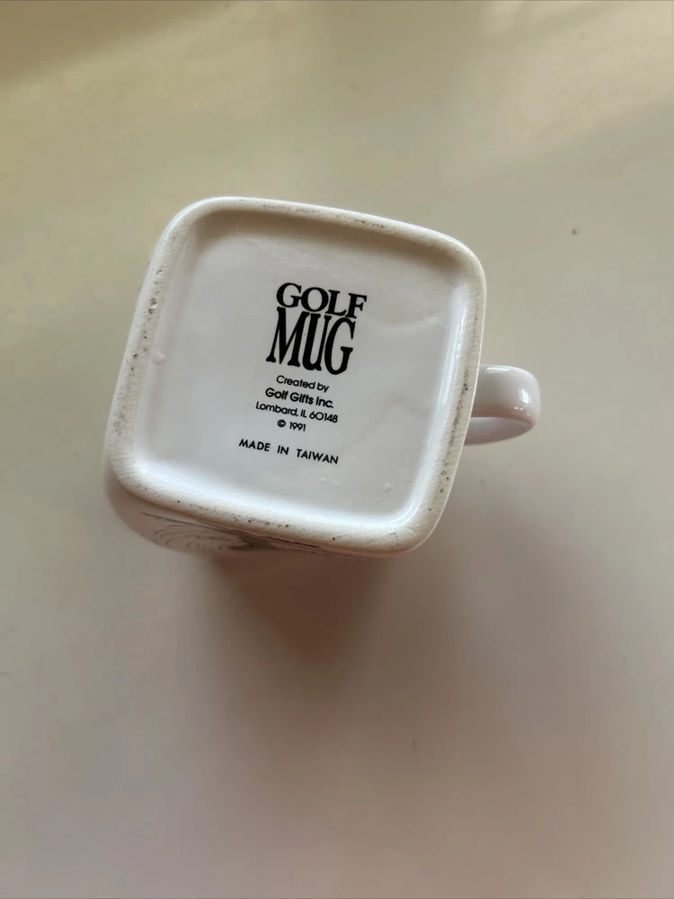 This vintage Golf Coffee Mug is a must-have for any golf enthusiast. The white square ceramic mug features a pictorial pattern of the results of an over swing, making it an excellent addition to any golfer's collection. The mug is perfect for all occasions and is suitable for coffee or tea. The Golf Mug is microwave and dishwasher safe, making it convenient to use and clean. It comes in a set that includes a coffee mug, making it a great gift for a golf-loving friend or family member. This Mug is an authentic product made in Taiwan by the Golf Mug brand. Order now and enjoy your morning coffee in style. Great GAG gift for the golfer