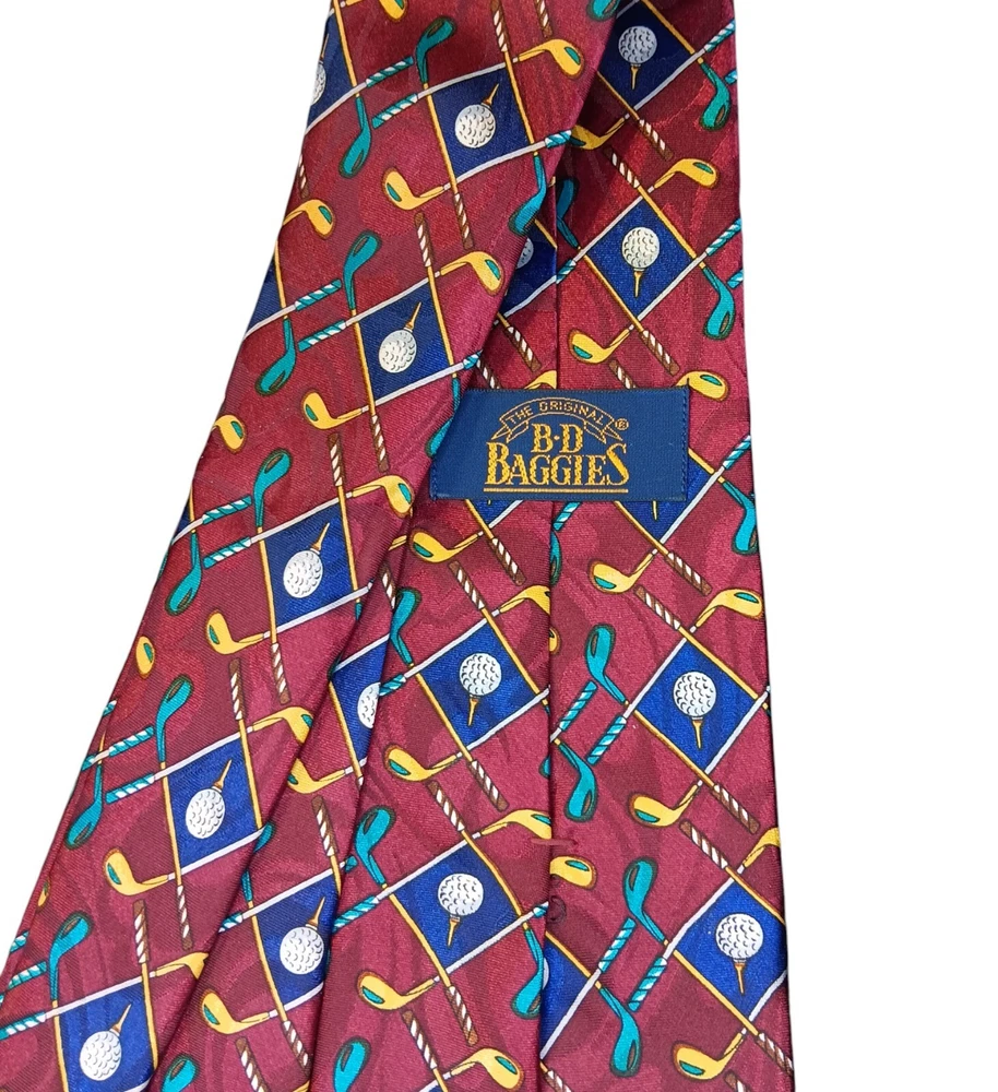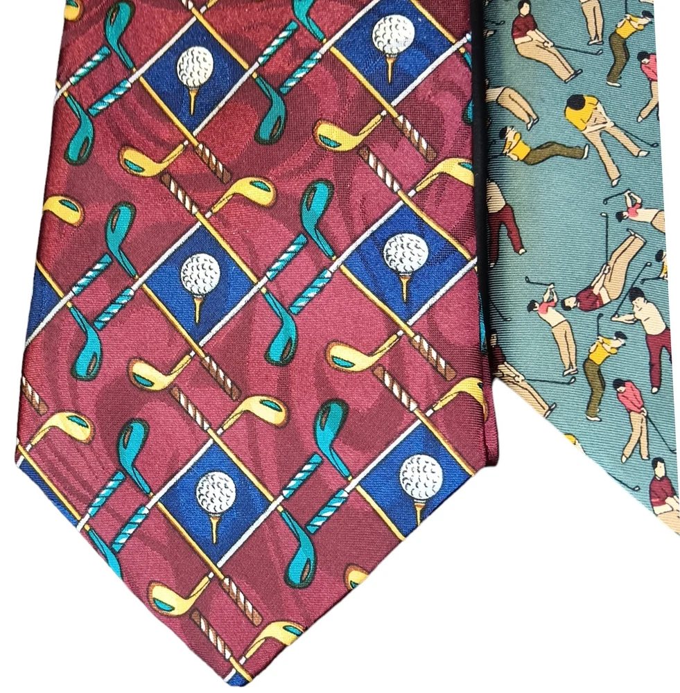 Golf Tie Neckties BD Baggies and Spencer & Lowe Red Golf Balls Green Golfers Two