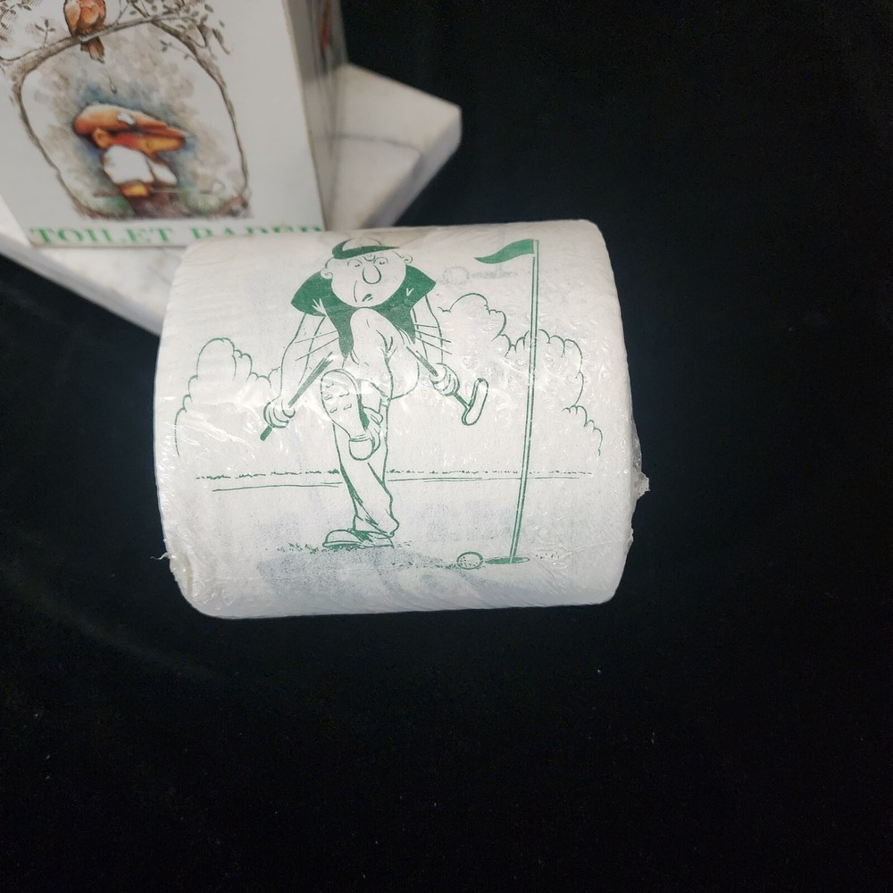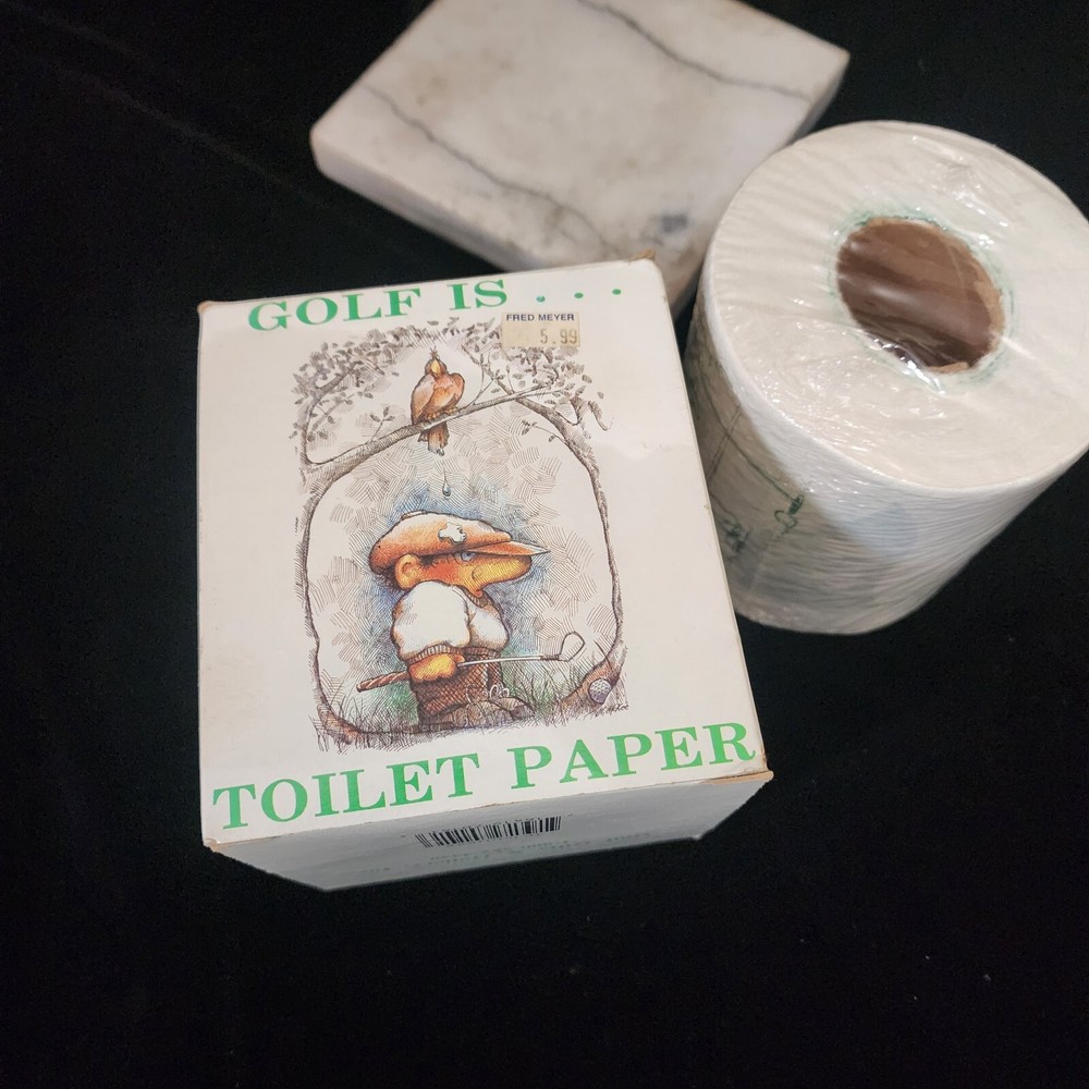 This hilarious golf-themed toilet paper is a must-have for any golf lover with a sense of humor! The vintage charm adds character, and even with minor signs of age, it still delivers a good laugh. Perfect as a quirky gift or a fun conversation starter in the bathroom. The sealed box keeps it protected, and the 19th hole joke never gets old. Highly recommend for anyone who enjoys a lighthearted twist on everyday items!