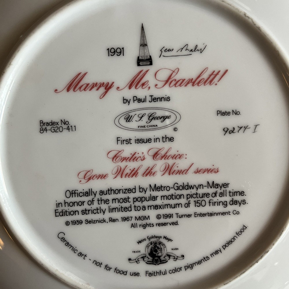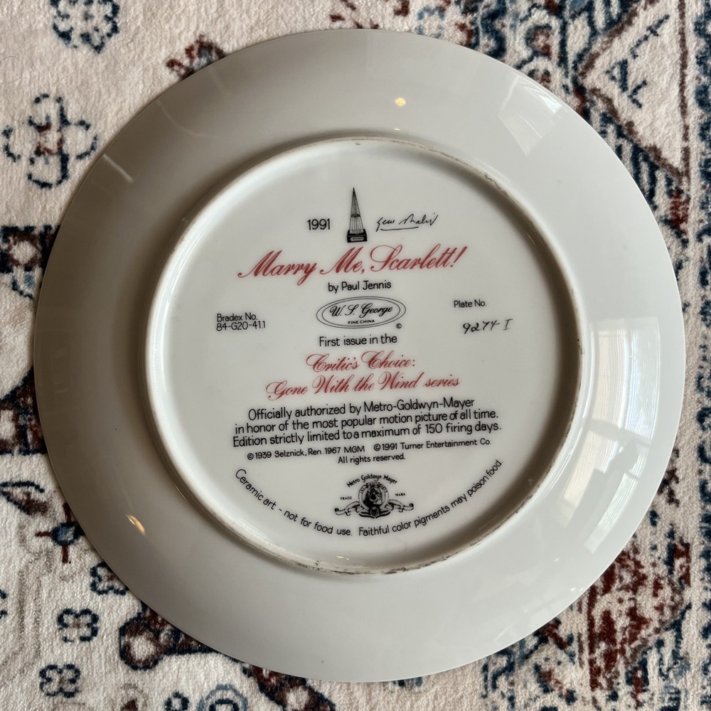 Gone With The Wind Collector Plate by W.S. George Paul Jennis Limited Edition