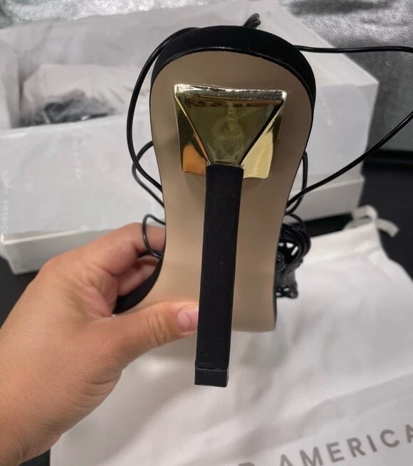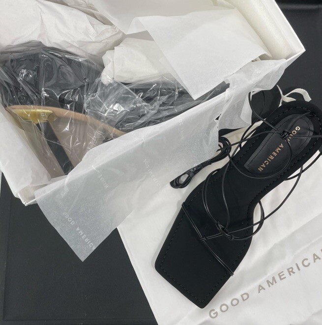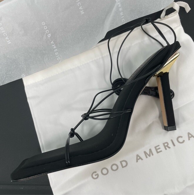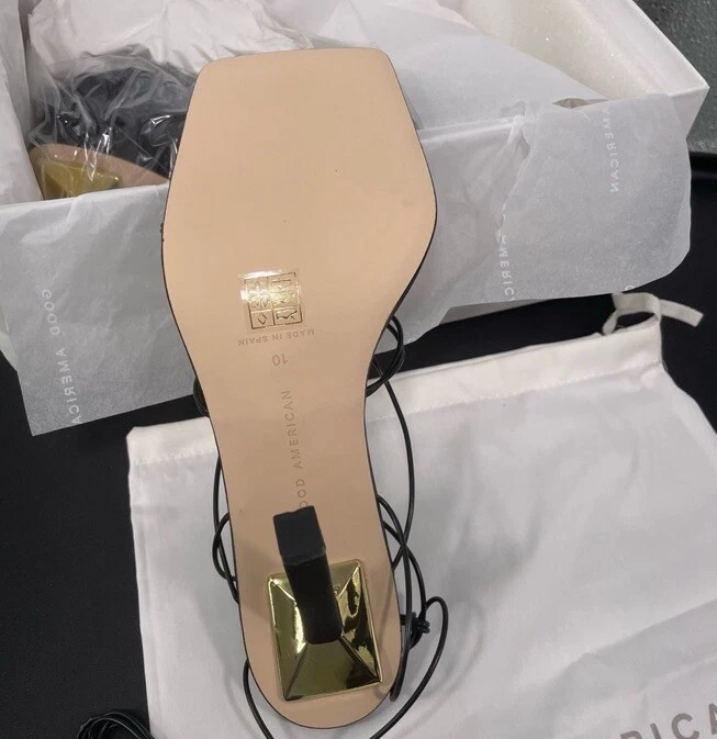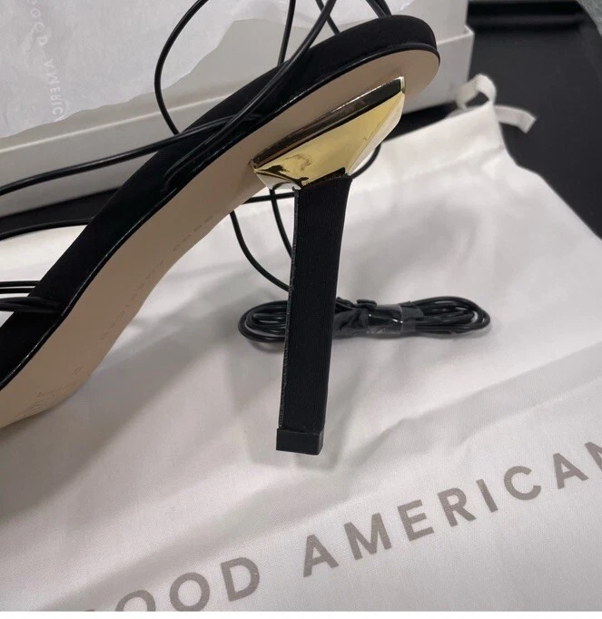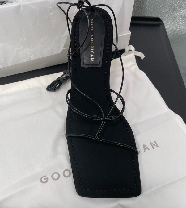 Good American Size 10 Black Terry Heels New in box/dustbag Box a little damaged Square open toe Slip on 4.33" heel Textile upper, textile/leather lining, rubber sole Made in Spain MEASUREMENTS PICTURED SAME/NEXT DAY SHIPPING SHIPPED WITH CARE SMOKE FREE HOME NO TRADES