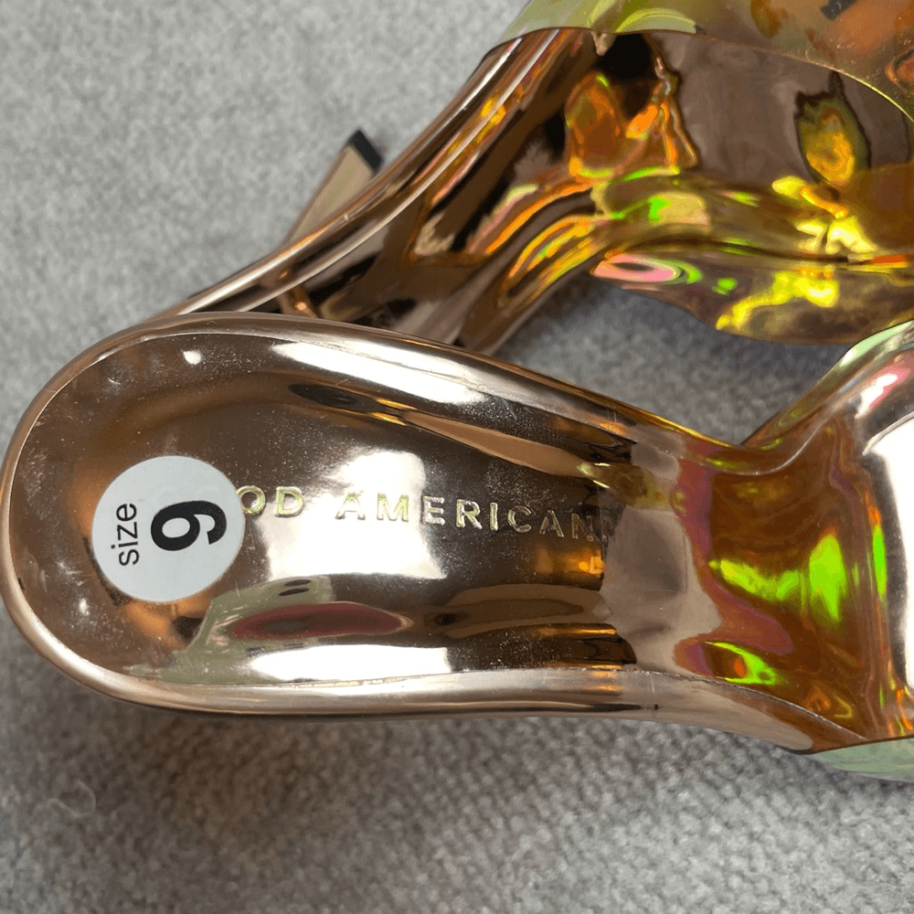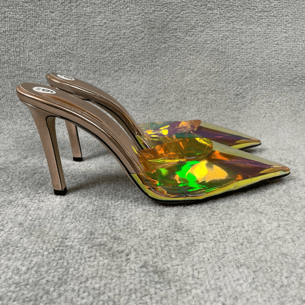 NIB Good American Psychedelic Color Mule Stilettoes New Years Eve Heels 9 $275 Excellent condition - new, shelf pull Size 9 4” heel Ships Fast Ships from a smoke free home