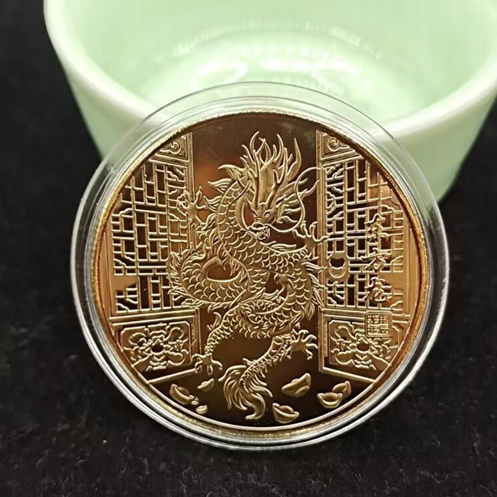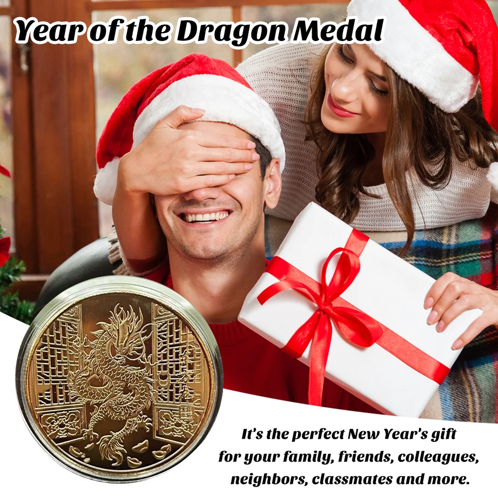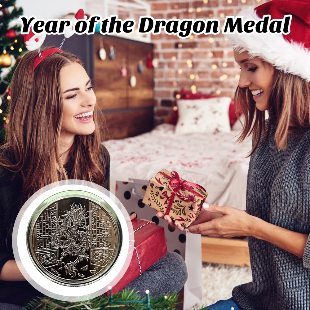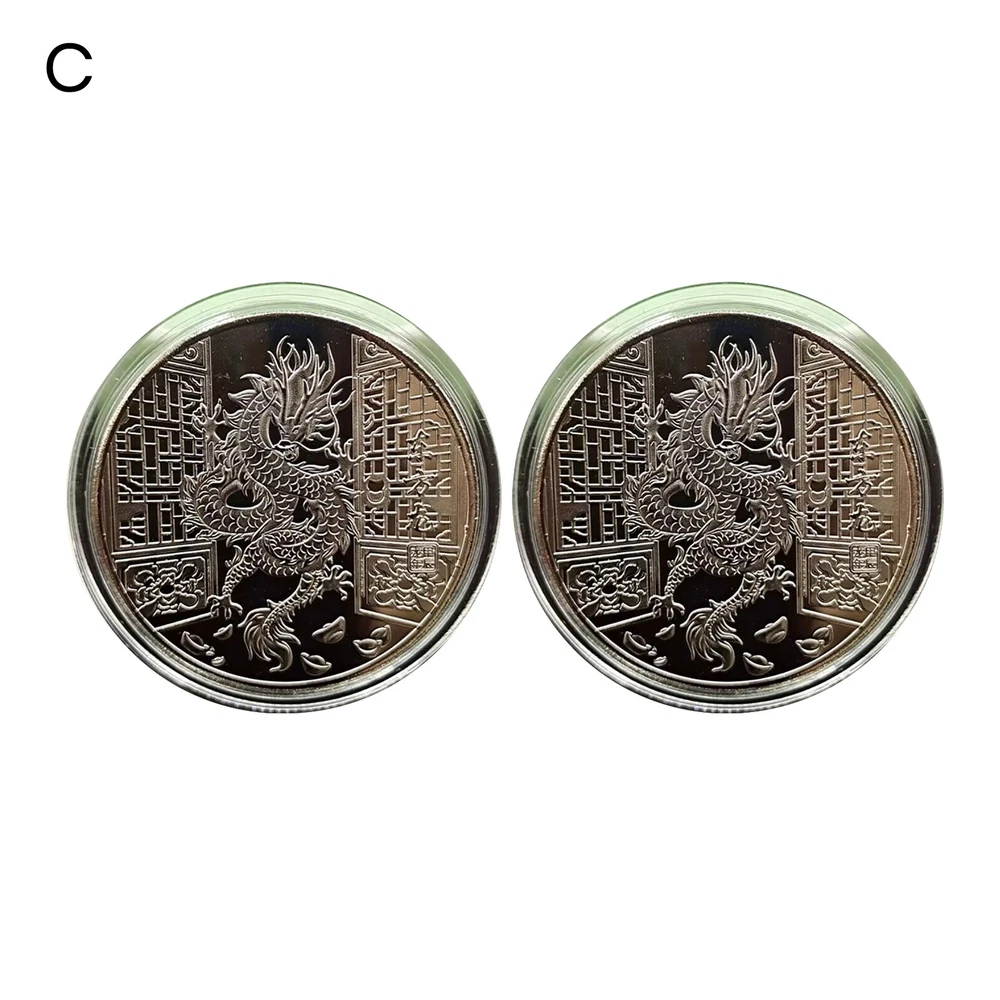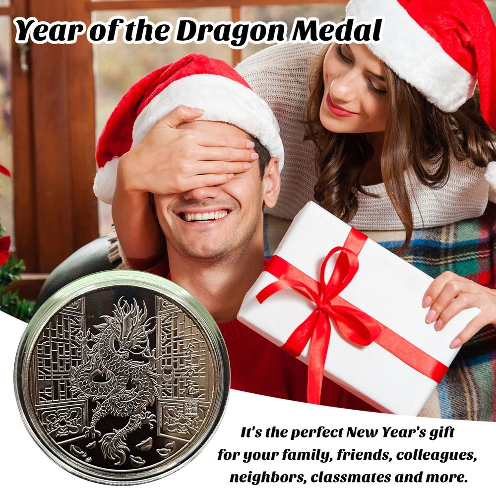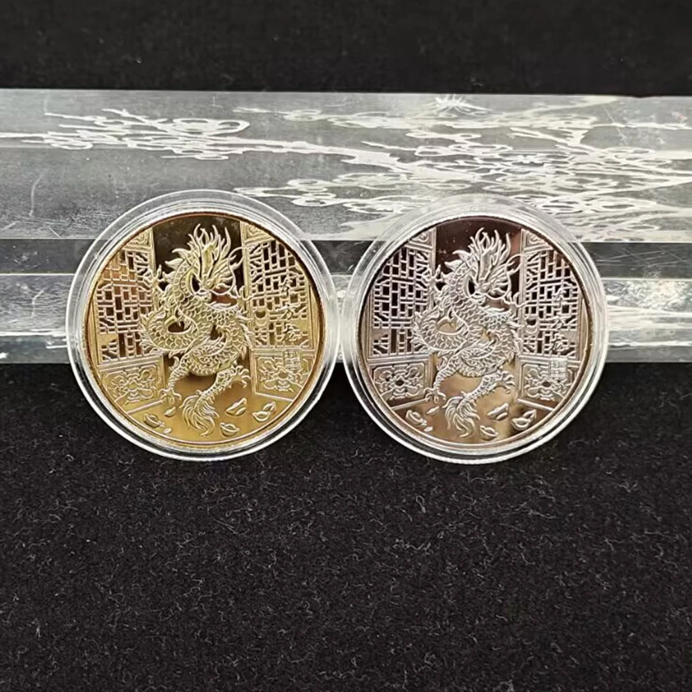 Good Luck Dragon Coin Silver Color 2024 Year Souvenir Medal Set Chinese