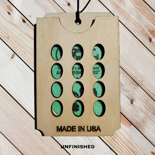 A Beautiful Handcrafted Wooden Car Air Freshener Holder. It comes with a choice of seven stylish vivid colored stains, Cameo Apple, Lime Grass, Weathered Gray, Golden Oak, Pineapple Yellow, Blue Spruce, Rose Pink or you can choose it Natural so you can apply your own stain if desired. Just slide in one of the supplied Scented Wafers or the blank felt pad with your own oils on it. Every Wooden Car Air Freshener Holder is supplied with two (2) Scented Wafers inserts and one (1) Unscented Felt Pad insert, which you can add your own scent. The Scented Wafers are pre-scented, and you can choose from over 20 different scents! Each Wooden Car Air Freshener Holder is Handmade and hand stained, so no two are ever identical! This is the perfect gift for yourself or as a thoughtful gift for someone special in your life. Can be used in Cars, RVs, Dorm Room, Homes, Lockers, Gym Bags & More! Just insert the Scented Wafer or Felt Pad into the Car Air Freshener Holder and place wherever you choose! ?DETAILS? ? Wooden Car Freshener Holders are approximately 3.8? high x 2.5? wide. ? Made from Basswood & Plywood. ? You can choose either a colored stain or natural. ? Stained with premium stain. ? Supplied with two (2) Scented Wafers inserts. ? Supplied with one (1) Unscented Felt Pad insert. ? Colors may slightly vary on screen from the physical product. ? $10 for 1 Wooden Air Car Freshener Holder, 2 Scented Wafers & 1 Unscented Felt Pad only.