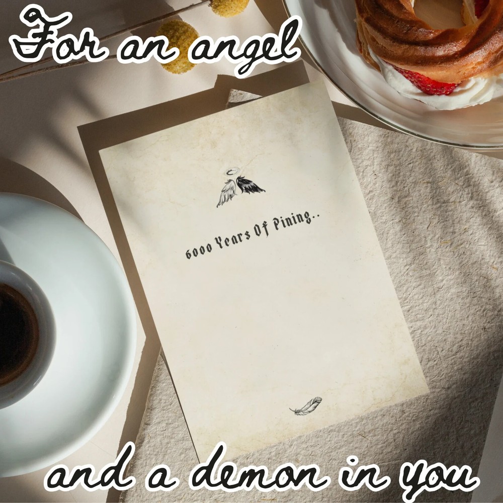 ❤ BRING ROMANCE INTO YOUR LIFE!! I bet it's very easy to find a journal with a very conventional cover and boring interior, but I doubt you are able to easily get your hands on a notebook that is poetic and witty in nature, but also conveys the essence of the infamous gOmens fandom. Which is why this daily diary makes a perfect gift for anyone who adores Good Omens and our "ineffable husbands". Whether you use these notepads for your simple daily accounts or occasional poetic outbursts, these cool journals are a beautiful way to commemorate the GO series and remain close to the characters and to a lovelorn being that's within you. ❤ What's even more attractive is that this journal comes with a mix of black and white interior pages for both dark ink pens and white ink pens, a mixed color combination for your amusement of course, contradicting each other, just like our favorite angel and demon. You'll get utter satisfaction from writing down your thoughts, comments or heartfelt poetry in these imaginative and profound journals. This funny "6000 years of pining" notebook makes an awesome and unique gift for anyone, including yourself, for a birthday, Christmas, Valentine's day or any other occasion. ❤ Great for black and white ball pens, gel pens, ink or pencils. This well-made present is made-to-order and has a perfect 6x9 size, which is easy to carry around, and just the right size for your purse, bag, backpack, laptop case or a baby stroller. ❤ Journal Features: • 120 pages • beautiful matte cover • interior has a mix of alternating black and white color pages, with cute celestial accents (see pictures) • 6” x 9” paperback (softcover) • part of the gOmens series ❤ ALSO ----------------------- - Colors may vary when printed due to different screen resolutions, color depths and printer options. - NO REFUNDS OR EXCHANGES AT THIS TIME. --------------------------- ❤ PLEASE NOTE: All designs are copyrighted and cannot be reproduced or altered in any way. Distribution or reselling of these graphics is strictly prohibited. ©2024 - All rights reserved.