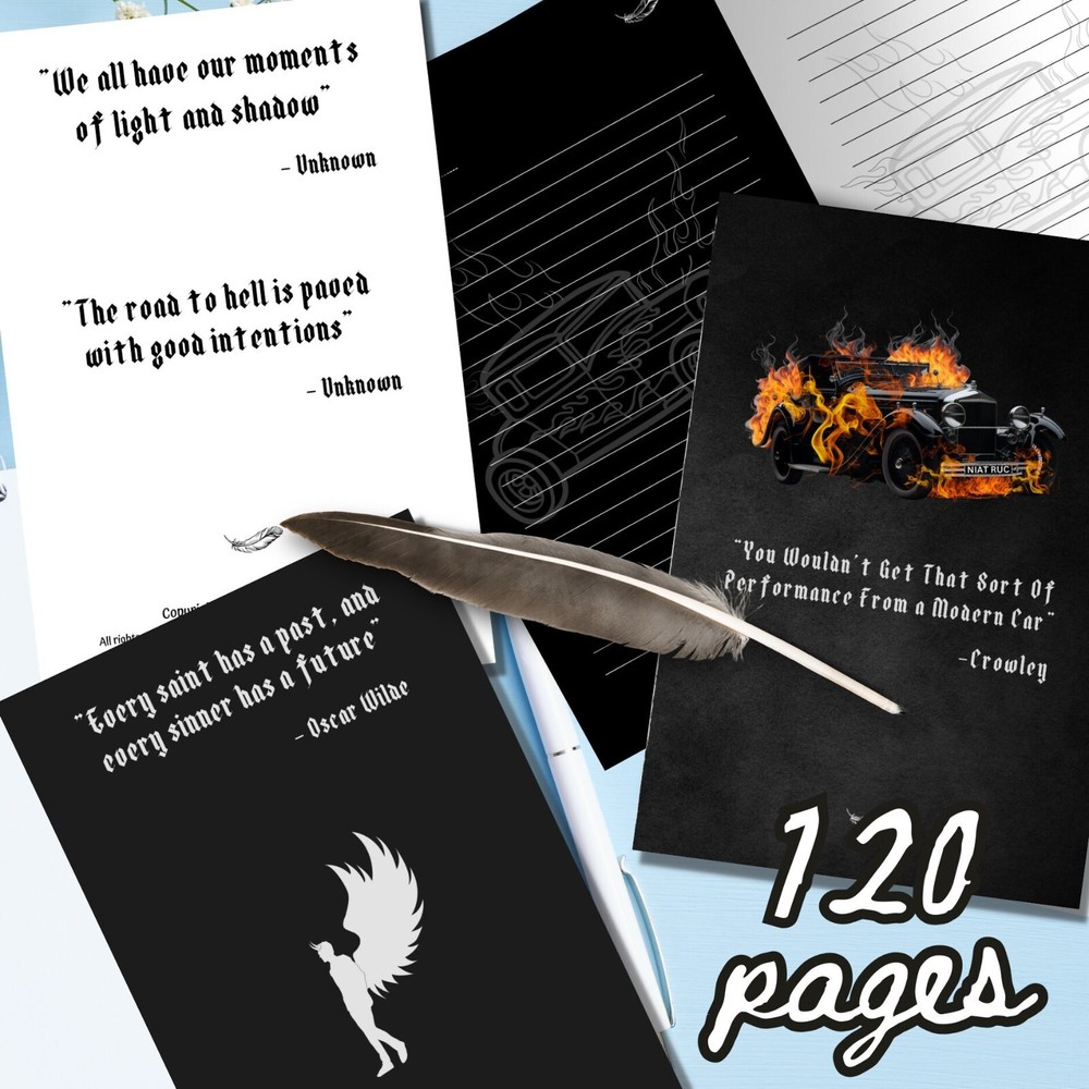 ❤ BRING WICKED INTO YOUR LIFE!! I bet it's very easy to find a journal with a very conventional cover and boring interior, but I doubt you are able to easily get your hands on a notebook that is poetic and witty in nature, but also conveys the essence of the infamous gOmens fandom. Which is why this daily diary makes a perfect gift for anyone who adores Good Omens and our "ineffable husbands". Whether you use these notepads for your simple daily accounts or occasional poetic outbursts, these cool journals are a beautiful way to commemorate the GO series and remain close to the characters and to a lovelorn being that's within you. ❤ What's even more attractive is that this journal comes with a mix of black and white interior pages for both dark ink pens and white ink pens, a mixed color combination for your amusement of course, contradicting each other, just like our favorite angel and demon. You'll get utter satisfaction from writing down your thoughts, comments or heartfelt poetry in these imaginative and profound journals. This funny "6000 years of pining" notebook makes an awesome and unique gift for anyone, including yourself, for a birthday, Christmas, Valentine's day or any other occasion. ❤ Great for black and white ball pens, gel pens, ink or pencils. This well-made present is made-to-order and has a perfect 6x9 size, which is easy to carry around, and just the right size for your purse, bag, backpack, laptop case or a baby stroller. ❤ Journal Features: • 120 pages • beautiful matte cover • interior has a mix of alternating black and white color pages, with cute celestial accents (see pictures) • 6” x 9” paperback (softcover) • part of the gOmens series ❤ ALSO ----------------------- - Colors may vary when printed due to different screen resolutions, color depths and printer options. - NO REFUNDS OR EXCHANGES AT THIS TIME. --------------------------- ❤ PLEASE NOTE: All designs are copyrighted and cannot be reproduced or altered in any way. Distribution or reselling of these graphics is strictly prohibited. ©2024 - All rights reserved.