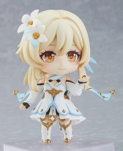Item Description Huntington Market Commitment Fast Shipping Safe & Secure Payments eBay Return Policy Visit Our Store The Huntington Market Guarantee 100% Customer Satisfaction Buy from us with confidence. With years of experience and thousands of orders fulfilled, we maintain a commitment to delivering top-level service. Rest assured, we are committed to 100% customer satisfaction. Contact Us Please contact us if you need assistance with anything through the eBay Messaging Service. We guarantee prompt customer service and satisfaction with personal responses within 1 business day. Follow Us Please visit our store and follow us! Fast Free Shipping Shipping Details We are committed to shipping within 1 business day after payment. Orders within the United States are shipped with USPS and UPS. Please note that mail can be delayed due to holidays, weekends and transit problems. Easy Payments We currently accept payments via the eBay Managed Payments service. Please ensure that payments are paid immediately at moment of purchase. Contact us if you are experiencing any issues with payments. We operate in USD. Return Policy Please Contact Us before returning items for the best service possible. All returns must be received in the same condition they arrived in and may be returned in accordance with the eBay Money Back Guarantee Policy . Pre-paid return labels will be provided for orders that arrive damaged or that don't match the listing description. Tab 6 Content *Item is brand new but comes in an opened box*. 7 x 3.7 x 5.4 inches; 8.11 ounces. From the popular game "Genshin Impact" comes a Nendoroid of Traveler (Lumine), one of the game's main characters! She comes with three face plates including a standard expression, a smiling expression and an attacking expression seen during combat. Optional parts include a sword and the Wings of Companionship. Enjoy creating poses from your favorite scenes from the game! Please feel free to Contact Us using the eBay item number for questions specific to this item.