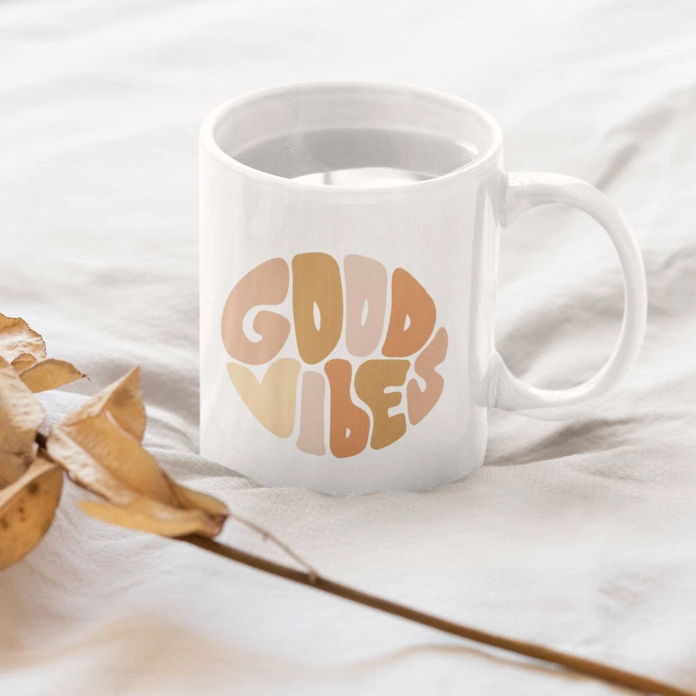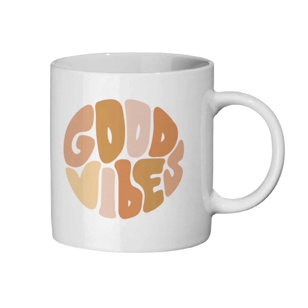 Good Vibes Mug Good Vibes Only Mug For Using At Work Trendy Mug Trendy Gift Happy Days Feeling Vibes Positive Feelings Product Details.. This high quality 11oz. ceramic white mug has a premium hard coat that provides crisp and vibrant color reproduction sure to last for years. Perfect for all hot & cold beverages. The highest quality printing possible is used. It will never fade no matter how many times you wash it. Material: 100% Ceramic. Print both sides. Dishwasher and Microwave Safe. High Gloss + Premium White Finish. Printed in the U.S.A. Personalized & Custom. We support personalized and custom mug to add custom, when placing an order, you can add notes to the "order note" in shipping address section. Also you can contact us directly via message. Shipping Info. Ready to ship in 1 to 2 business days, All products are made-to-order and proudly printed in the United States. Shipped by USPS and DHL, You will receive your order in 5-7 days. Replace & Refund. All products are defective during shipping broken, chipped will be replaced free of charge. You are not satisfied with the product, we will refund 100% money to you. If any other issues arise, please do not hesitate to message, we would be more than happy to assist you.