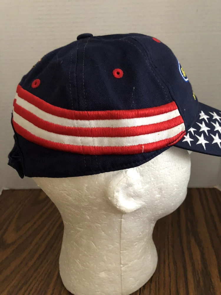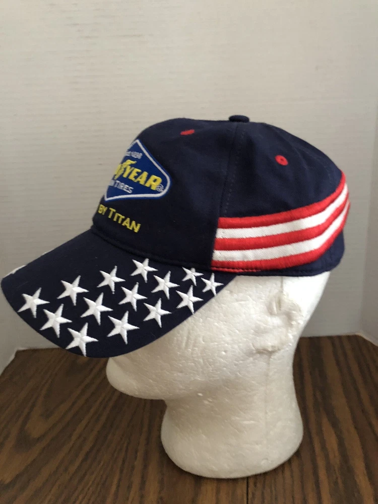 Show your love for the USA with this red, white, and blue Goodyear farm trucker hat. The hat features an adjustable strap for a comfortable fit and the iconic Goodyear brand. Perfect for any farmer or trucker, this hat is made by Titan and is in great condition. Hat has the cardboard in it yet and shows no evidence of being worn this a great looking hat if it doesn’t sell I will keep it Any QUESTIONS???please ask before purchasing 😀