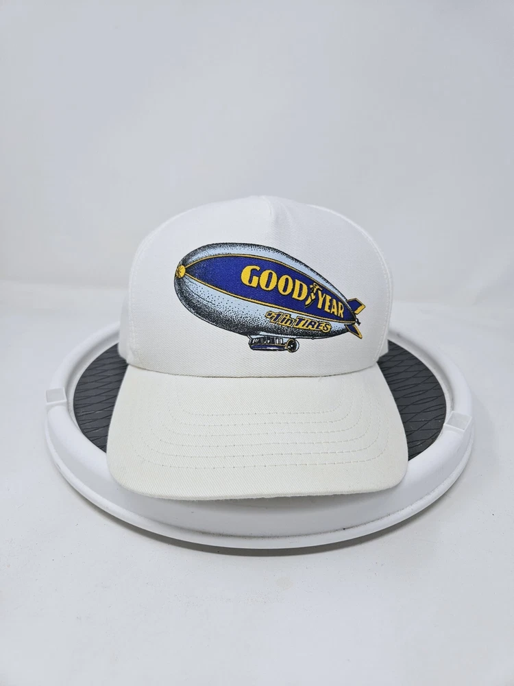 Brand: Goodyear Pattern: Solid Size: Adjustable Theme: USA, 90s, 80s Vintage: Yes gtin13: Does not apply Features: Adjustable Size Type: Regular Country/Region of Manufacture: United States Color: White UPC: Does not apply Style: Trucker Adjustment Type: Snapback Department: Men