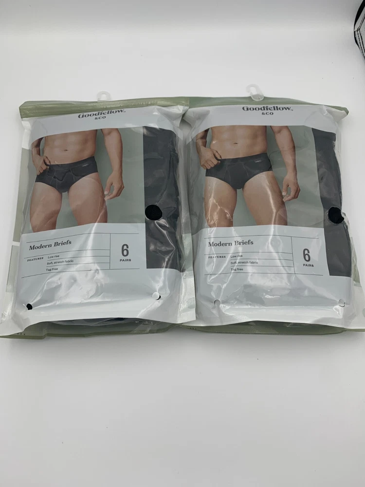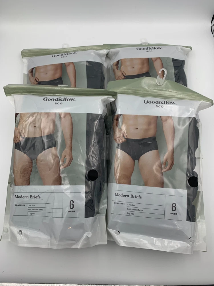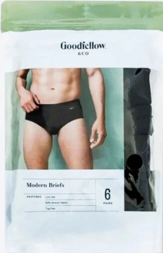 Stock up your underwear drawer with ultra-comfy pieces when you add a 6-Pack of Modern Briefs from Goodfellow and Co . This pack of men's underwear comes with six pairs of black briefs with a low-rise cut that's perfect for achieving a no-show look with any style of bottoms. The briefs are made from a lightweight blend of cotton and spandex for soft, breathable underwear that moves with you throughout your day, and their comfort is further enhanced by a tagless design that means you don't have to worry about itching or irritation at your back. 100percent Satisfaction Guaranteed. Gender: male. Age Group: adult. Pattern: Solid.