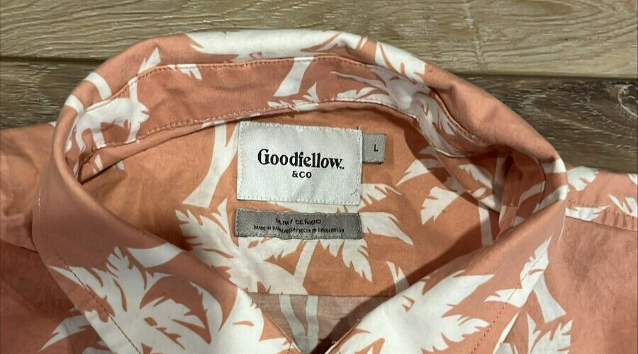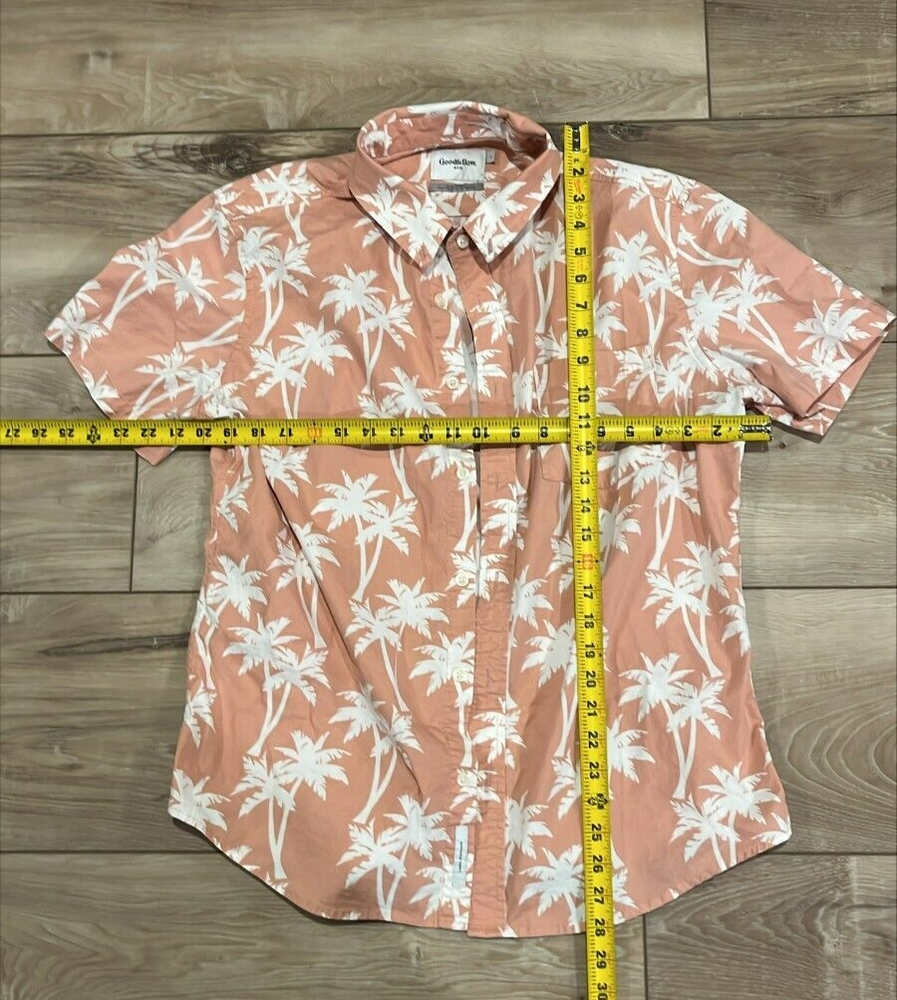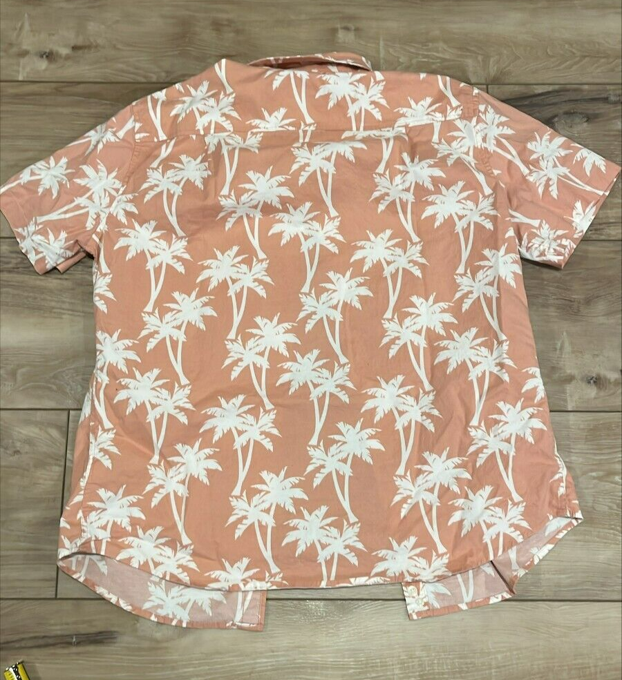 Goodfellow Northrop SLIM Fit Peach Palm Tree Beach Life Button Down Shirt L